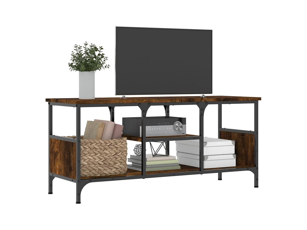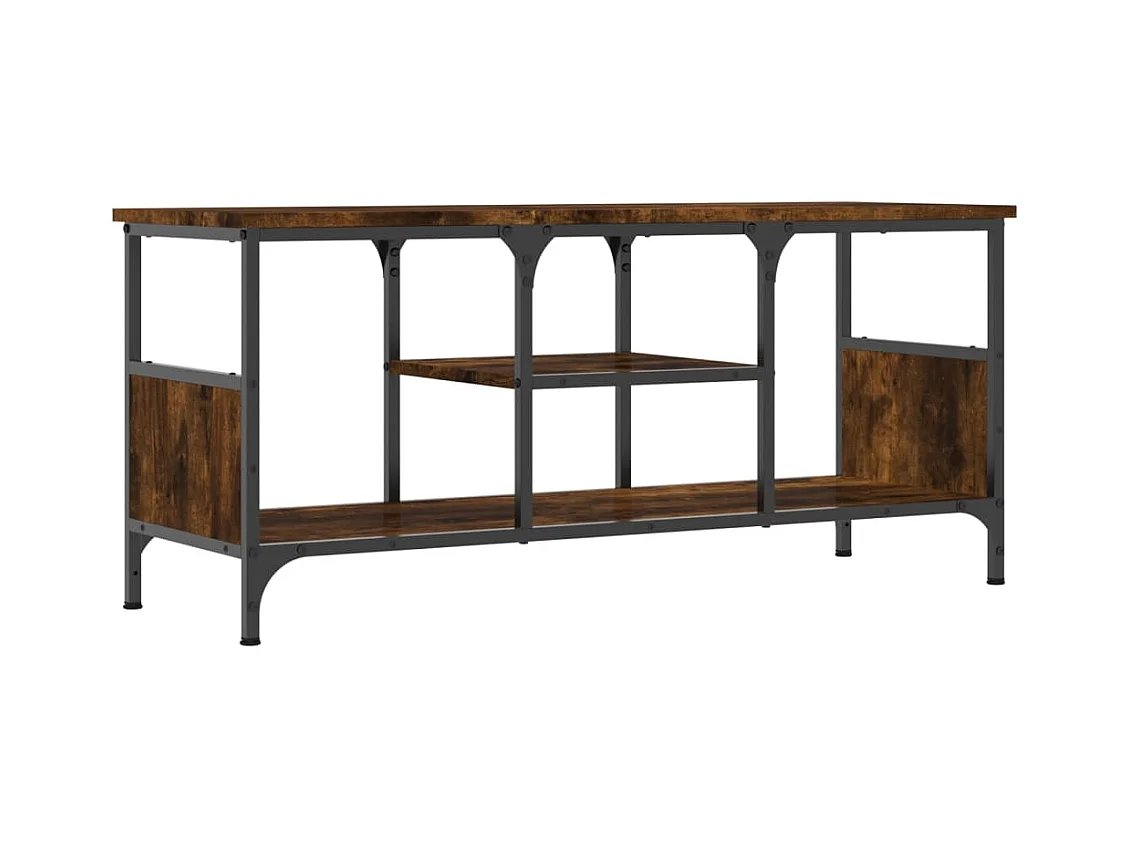 Meuble TV chêne fumé 100x35x45 cm bois d'ingénierie et fer