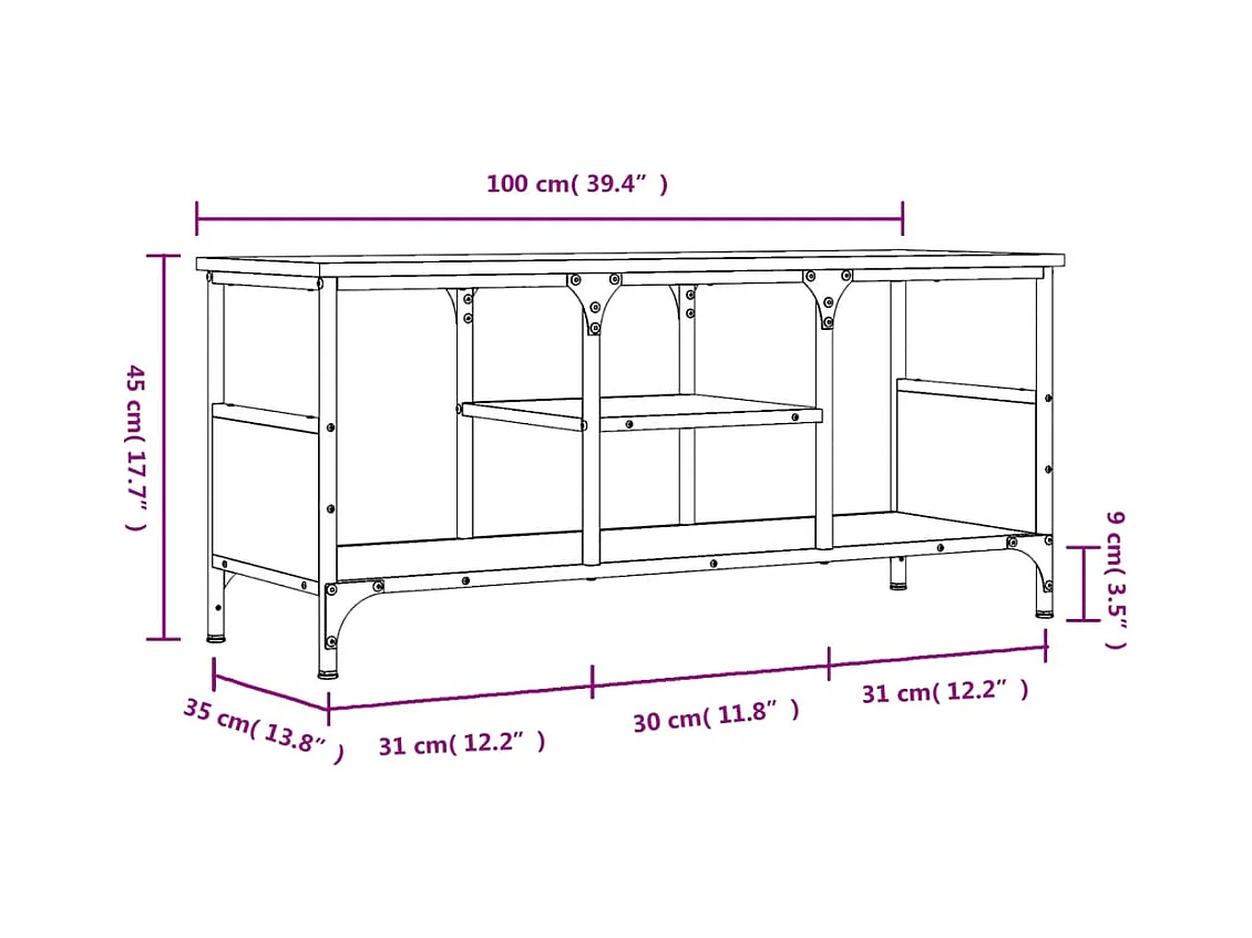 Meuble TV chêne sonoma 100x35x45 cm bois d'ingénierie et fer