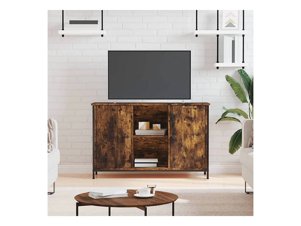 Meuble TV chêne fumé 100x35x65 cm bois d'ingénierie