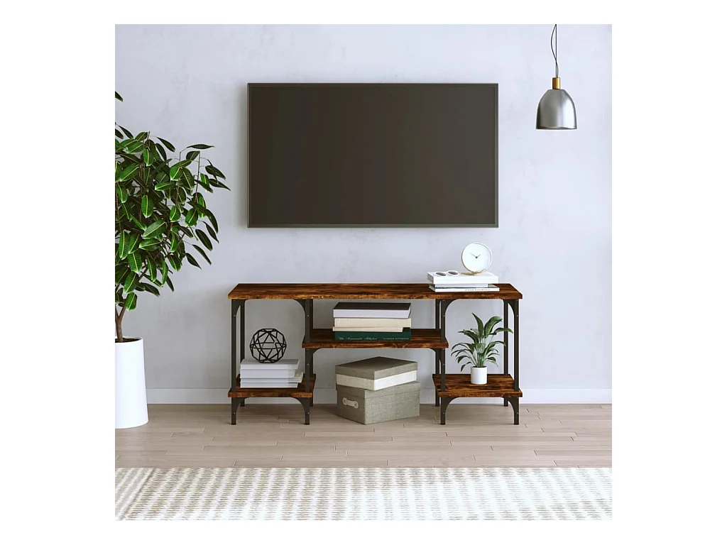Meuble TV chêne fumé 102x35x45 cm bois d'ingénierie