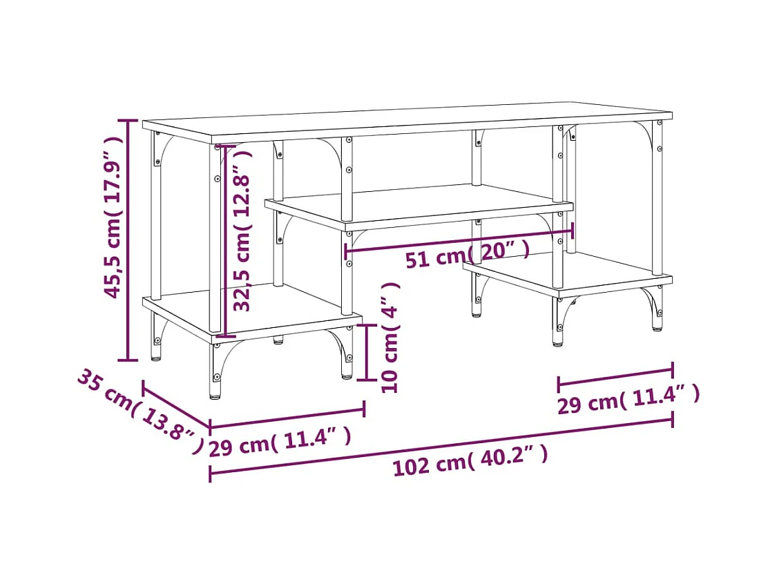 Meuble TV chêne sonoma 102x35x45,5 cm bois d'ingénierie