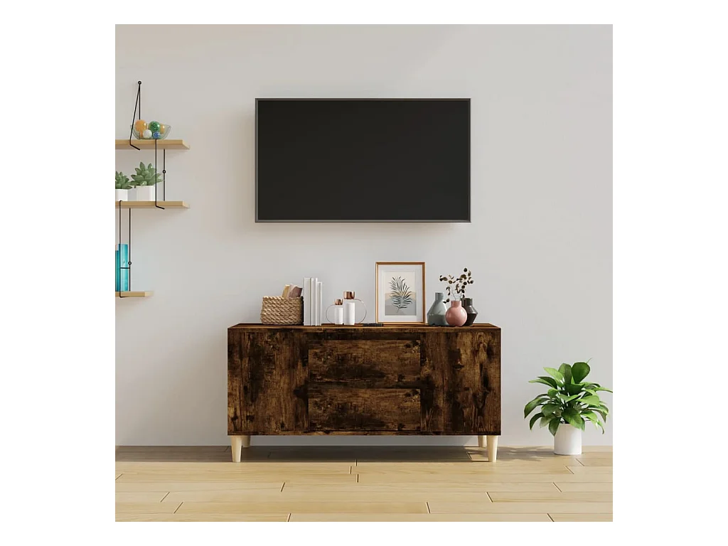 Meuble TV chêne fumé 102x36x50 cm bois d'ingénierie