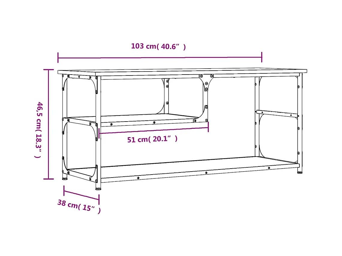 Meuble TV chêne fumé 103x38x46,5 cm bois d'ingénierie et acier