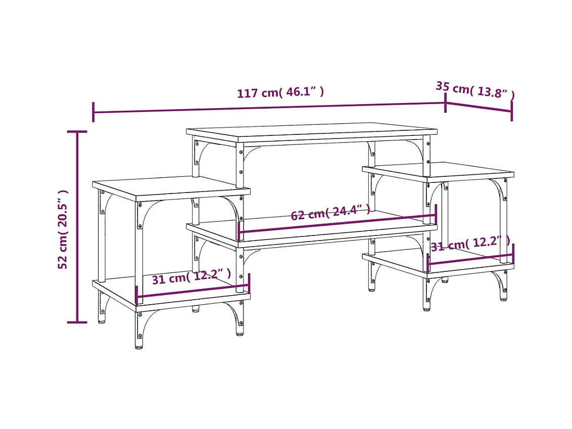 Meuble TV Chêne fumé 117x35x52 cm Bois d'ingénierie