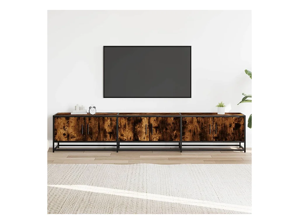 Meuble TV chêne fumé 210x35x41 cm bois d'ingénierie