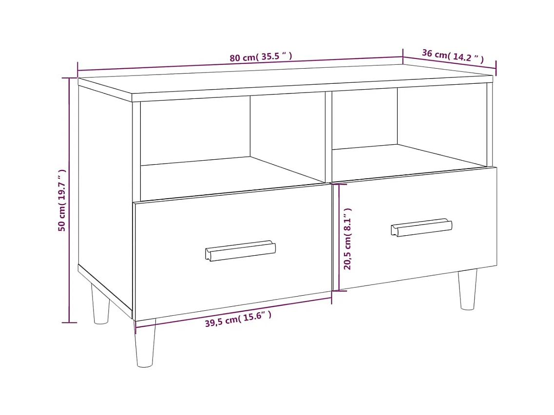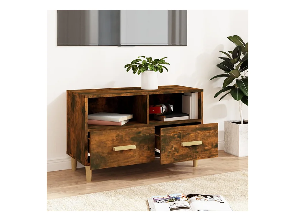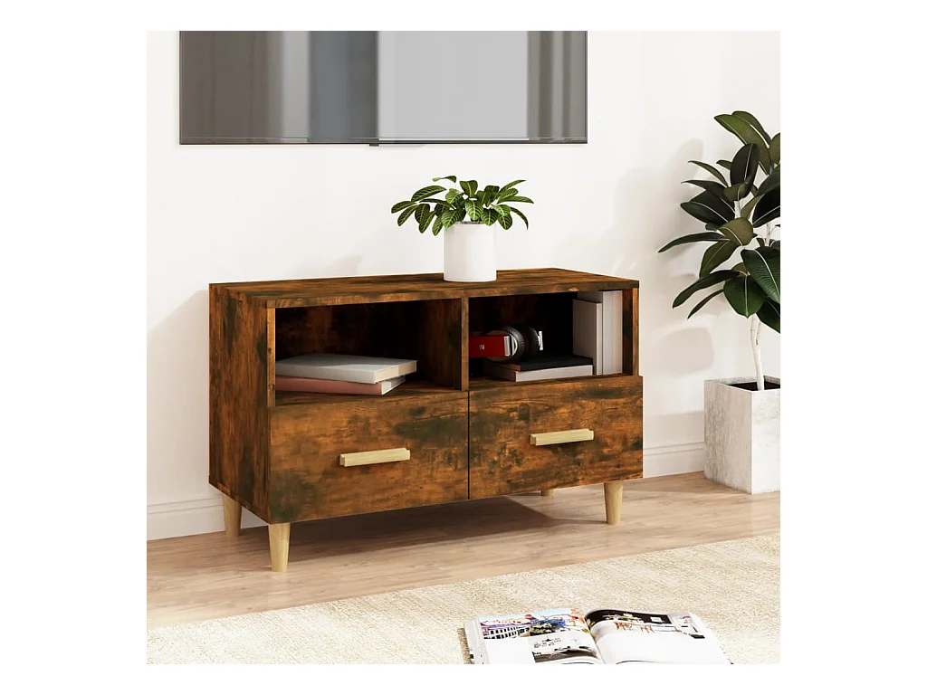 Meuble TV Chêne fumé 80x36x50 cm Bois d'ingénierie