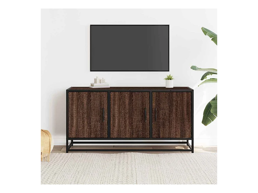 Meuble TV chêne marron 100x35x50 cm bois d'ingénierie et métal