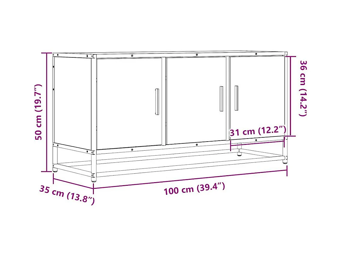 Meuble TV chêne sonoma 100x35x50 cm bois d'ingénierie et métal