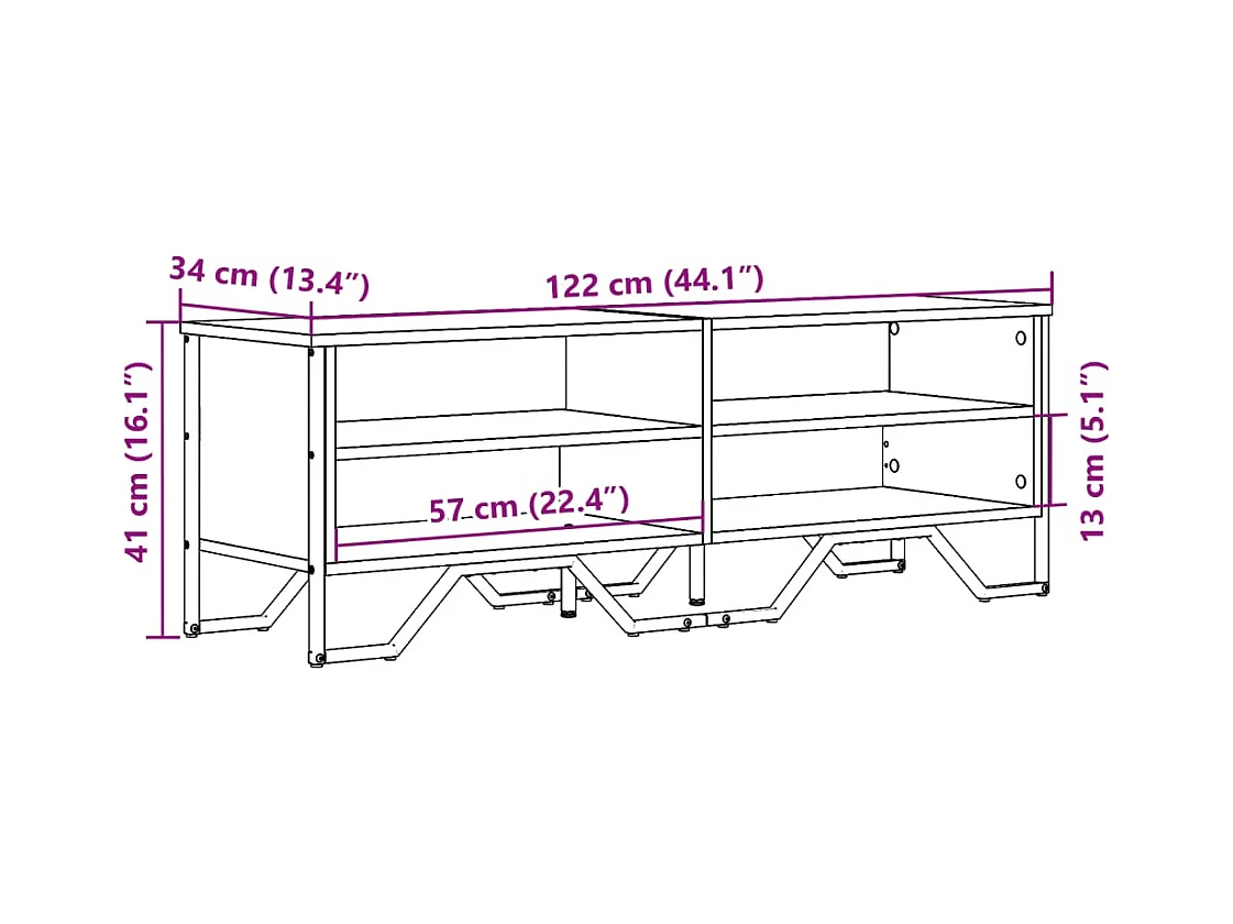 Meuble TV chêne sonoma 122x34x41 cm bois d'ingénierie