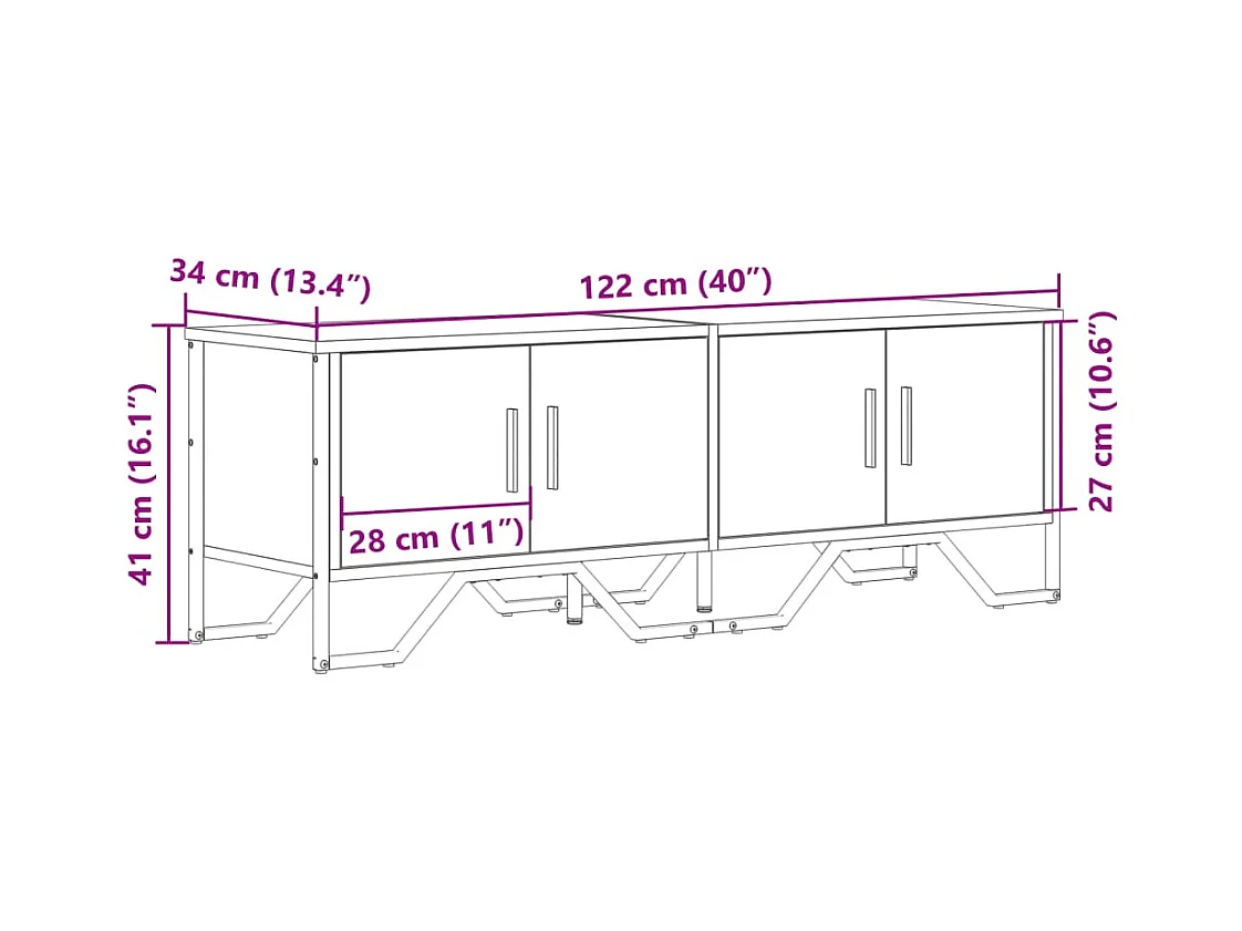 Meuble TV chêne sonoma 122x34x41 cm bois d'ingénierie