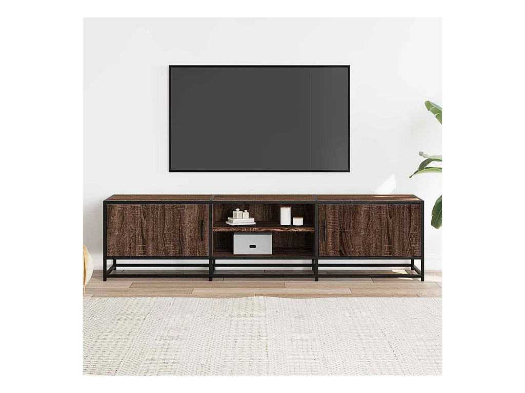 Meuble TV chêne fumé 160x35x41 cm bois d'ingénierie et métal
