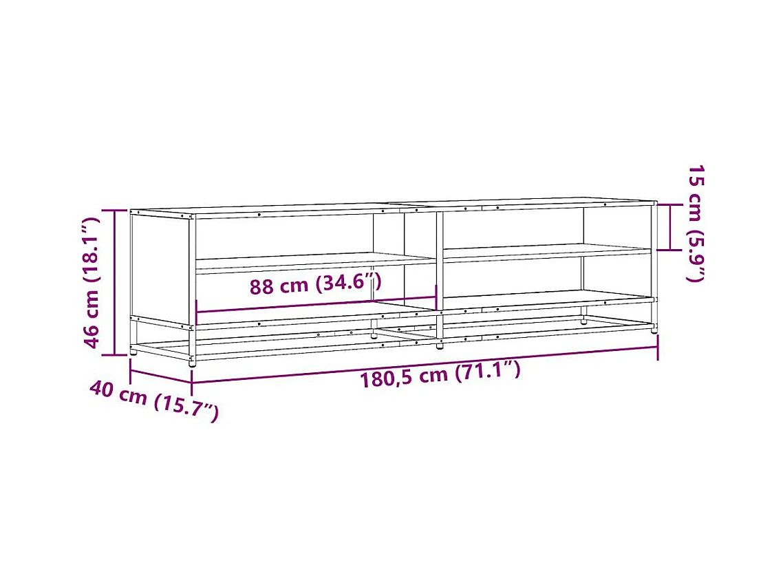 Meuble TV chêne sonoma 180x34x41 cm bois d'ingénierie