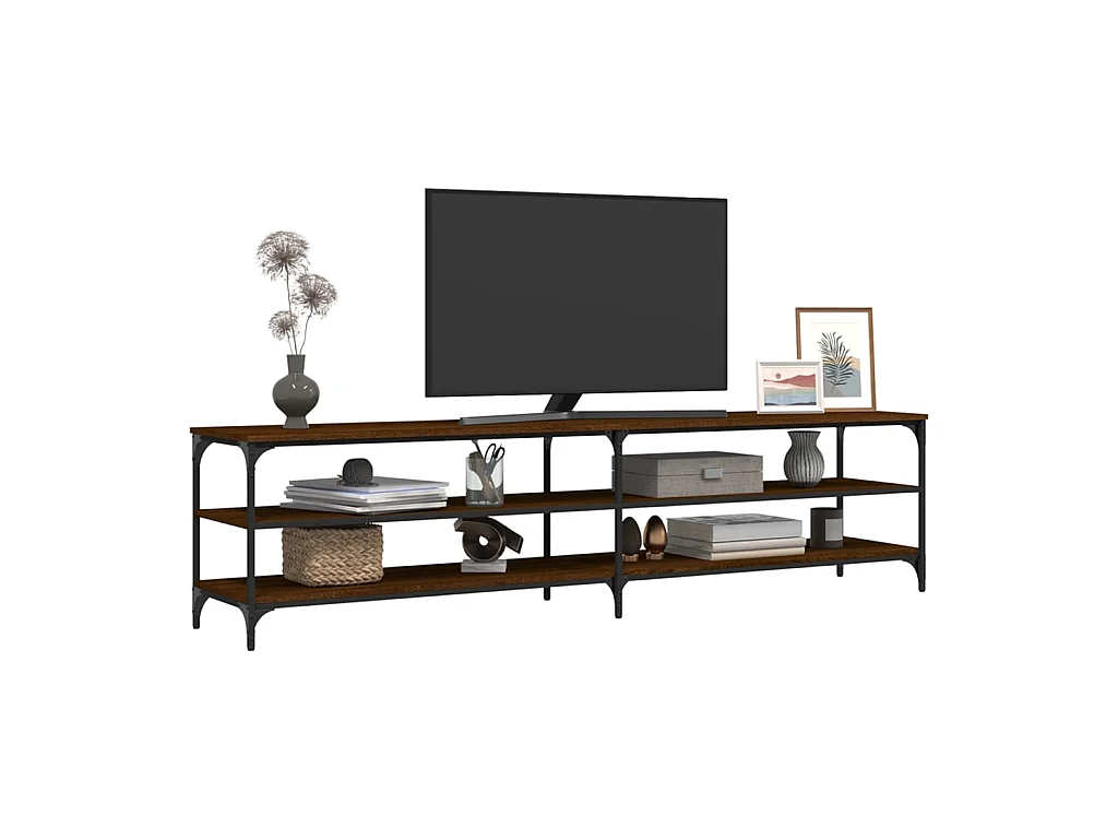 Meuble TV chêne marron 200x30x50 cm bois d'ingénierie et métal BE39710