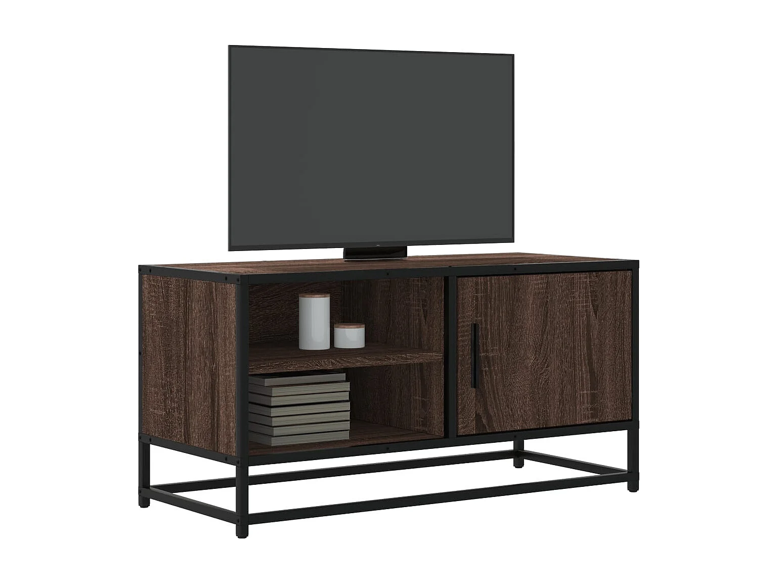 Meuble TV chêne fumé 80x34,5x40 cm bois d'ingénierie et métal