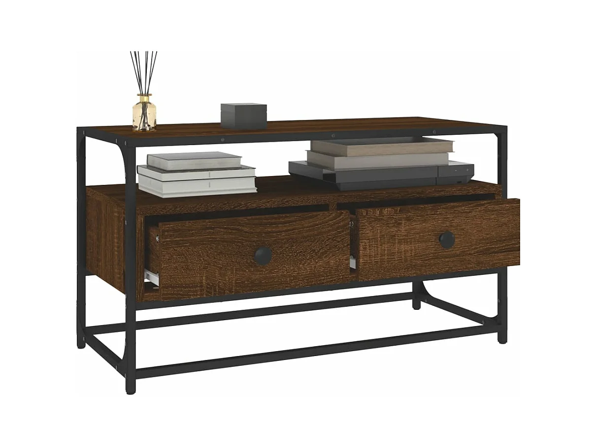 Meuble TV chêne marron 100x35x45 cm bois d'ingénierie et fer