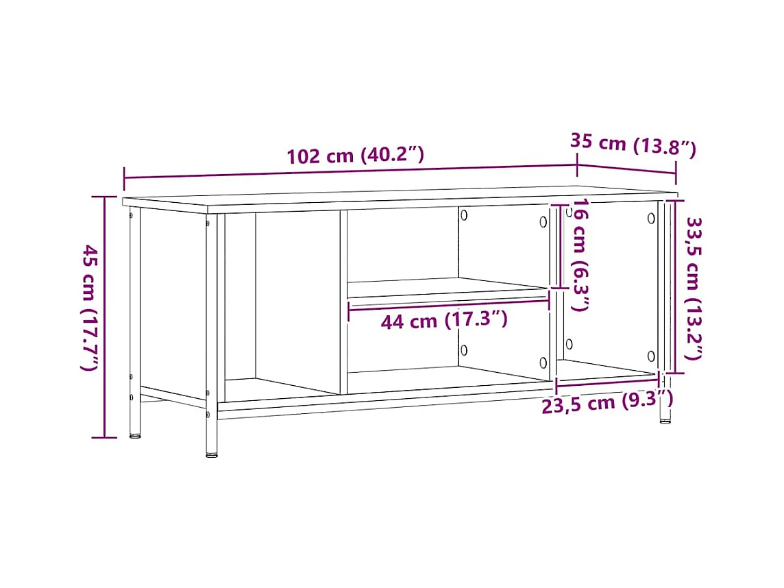Meuble TV Chêne noir 102 x 35 x 45 cm Bois d'ingénierie