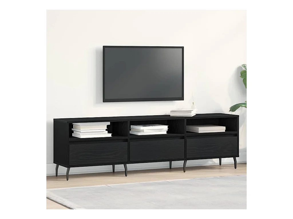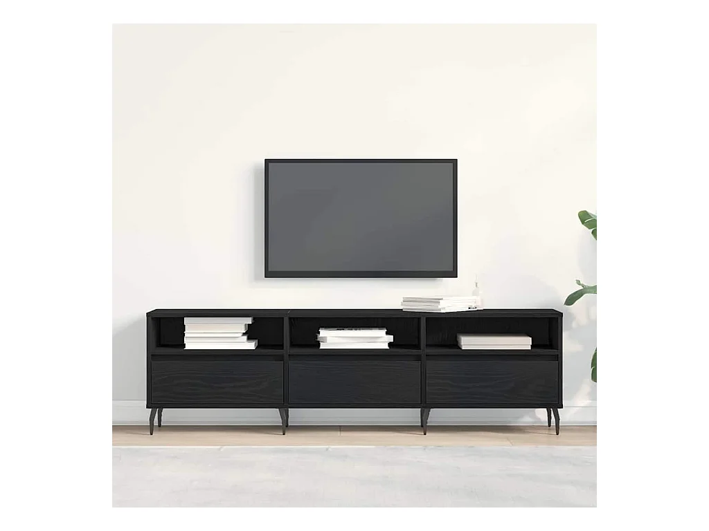 meuble TV Noir Chêne 150x30x44,5 cm en bois d'ingénierie