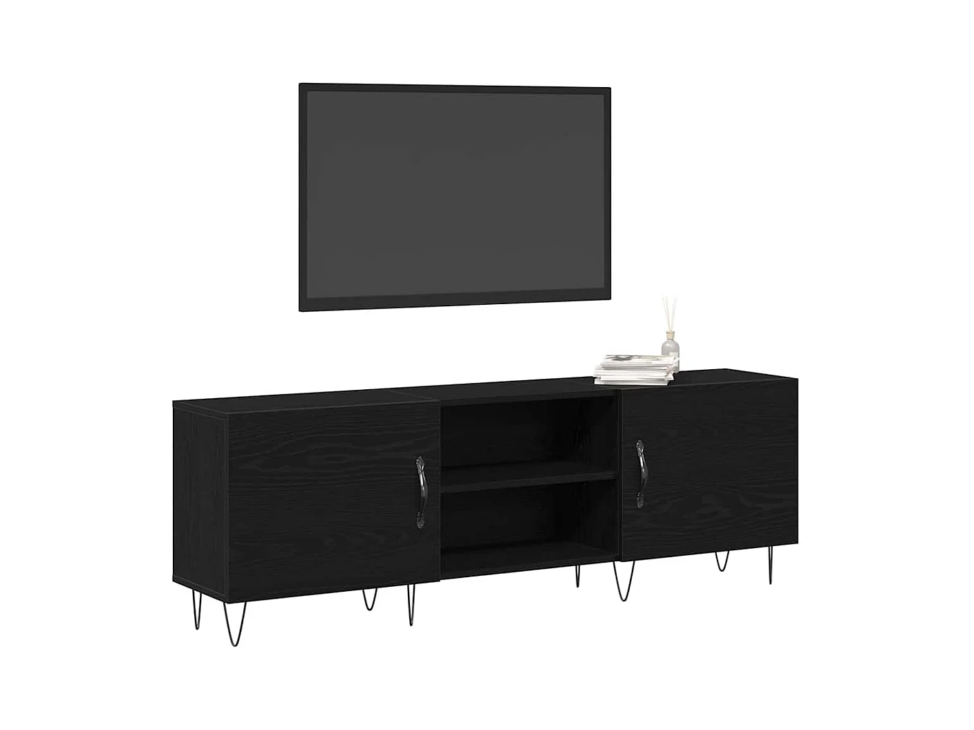 Meuble TV Noir Chêne 150x30x50 cm Bois d'ingénierie