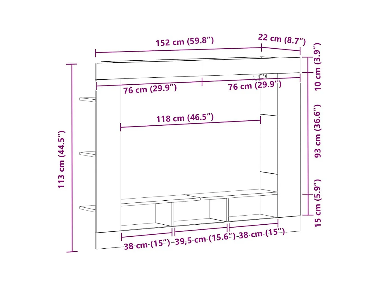Meuble TV Chêne noir 152 x 22 x 113 cm Bois d'ingénierie
