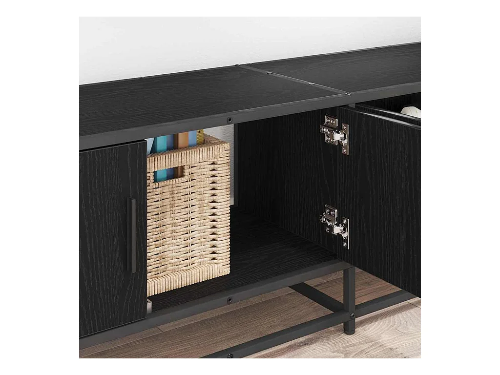 Meuble TV noir 150x35x41 cm bois d'ingénierie et métal