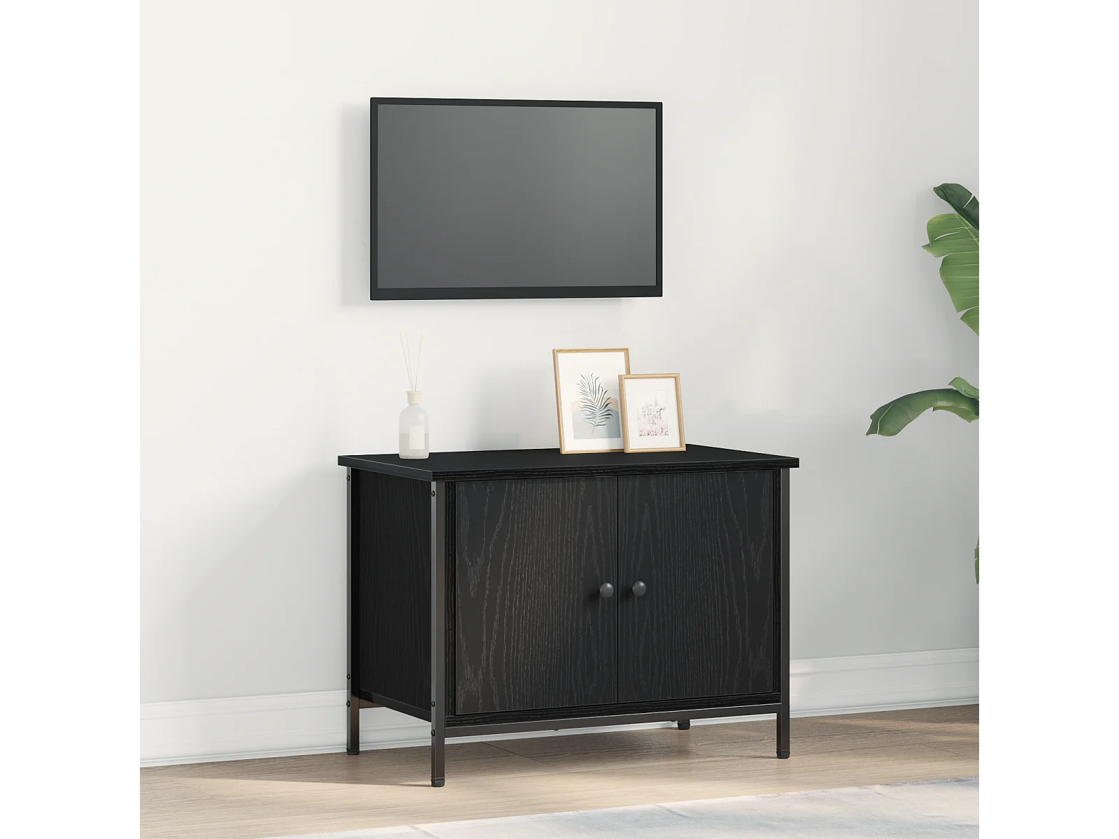 Meuble TV Noir Chêne 80x35x45 cm En Bois Agencé