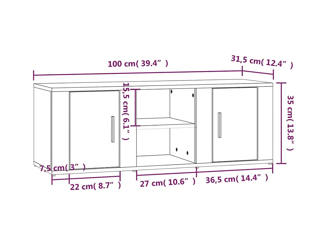 Meuble TV Chêne sonoma 100x31,5x35 cm Bois d'ingénierie