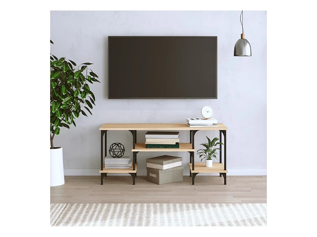Meuble TV chêne artisanal 102x35x36,5 cm bois d'ingénierie