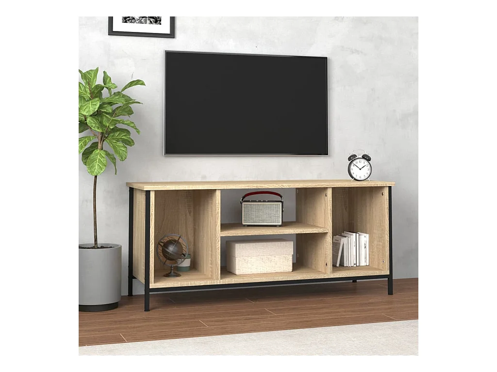Meuble TV chêne sonoma 102x33x45 cm bois d'ingénierie et fer FR57666