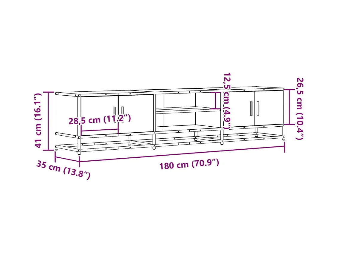 Meuble TV chêne sonoma 180x35x41 cm bois d'ingénierie