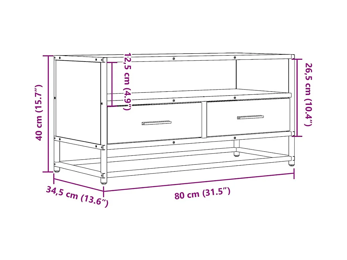 Meuble TV chêne sonoma 80x34,5x40 cm bois d'ingénierie et métal