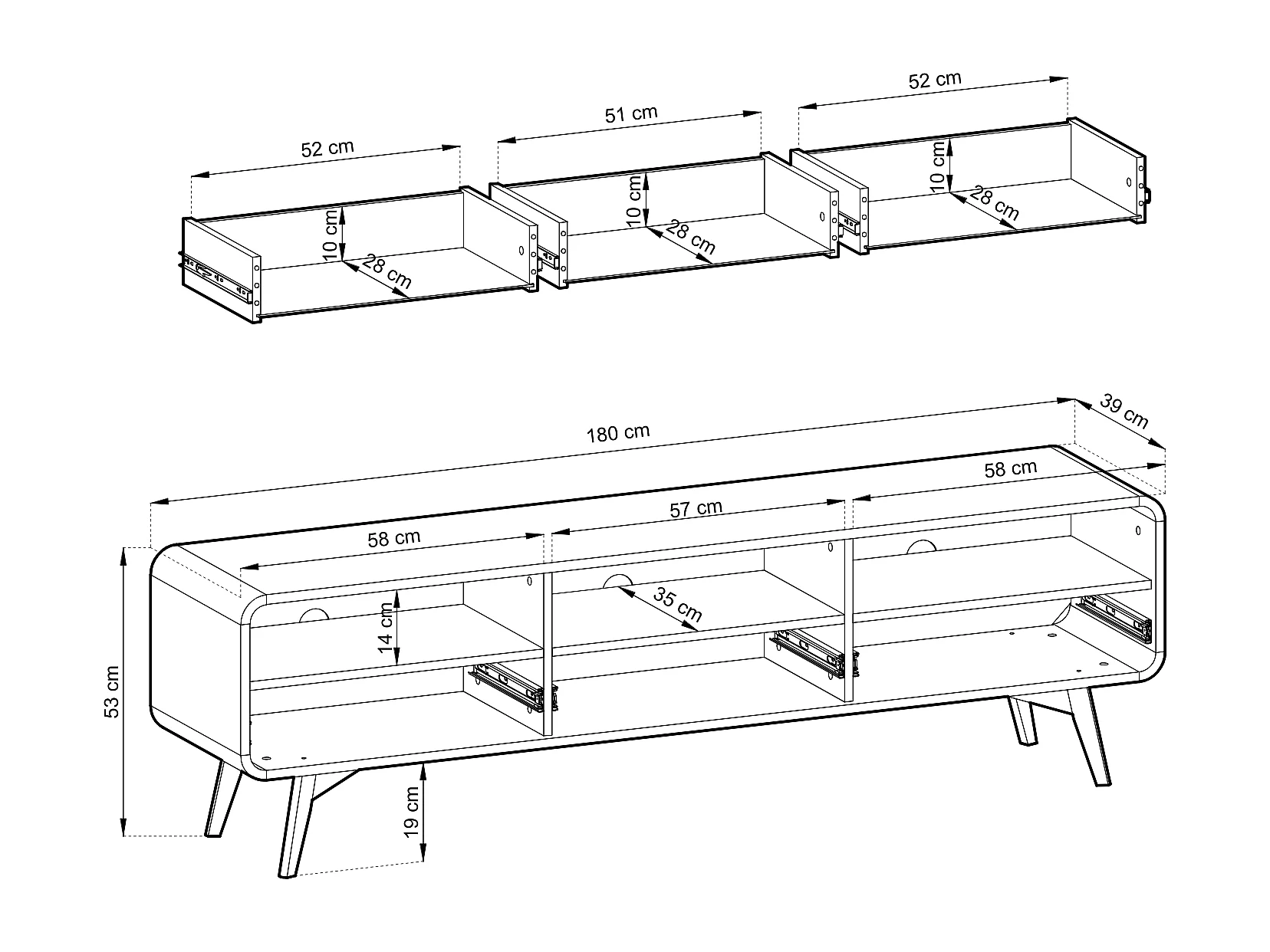 Meuble TV, Chêne Vincenza, 180 X 52 X 39 Cm