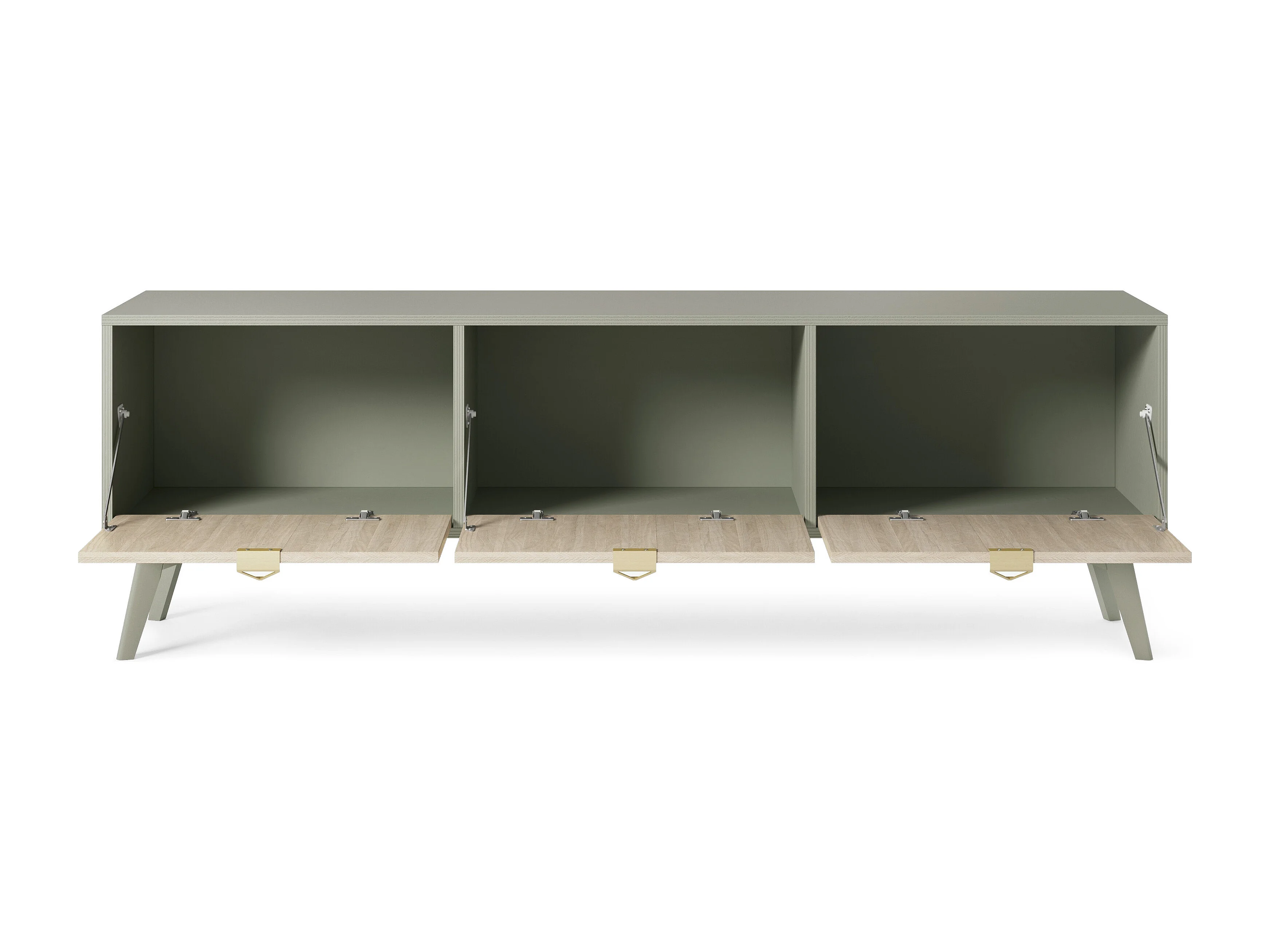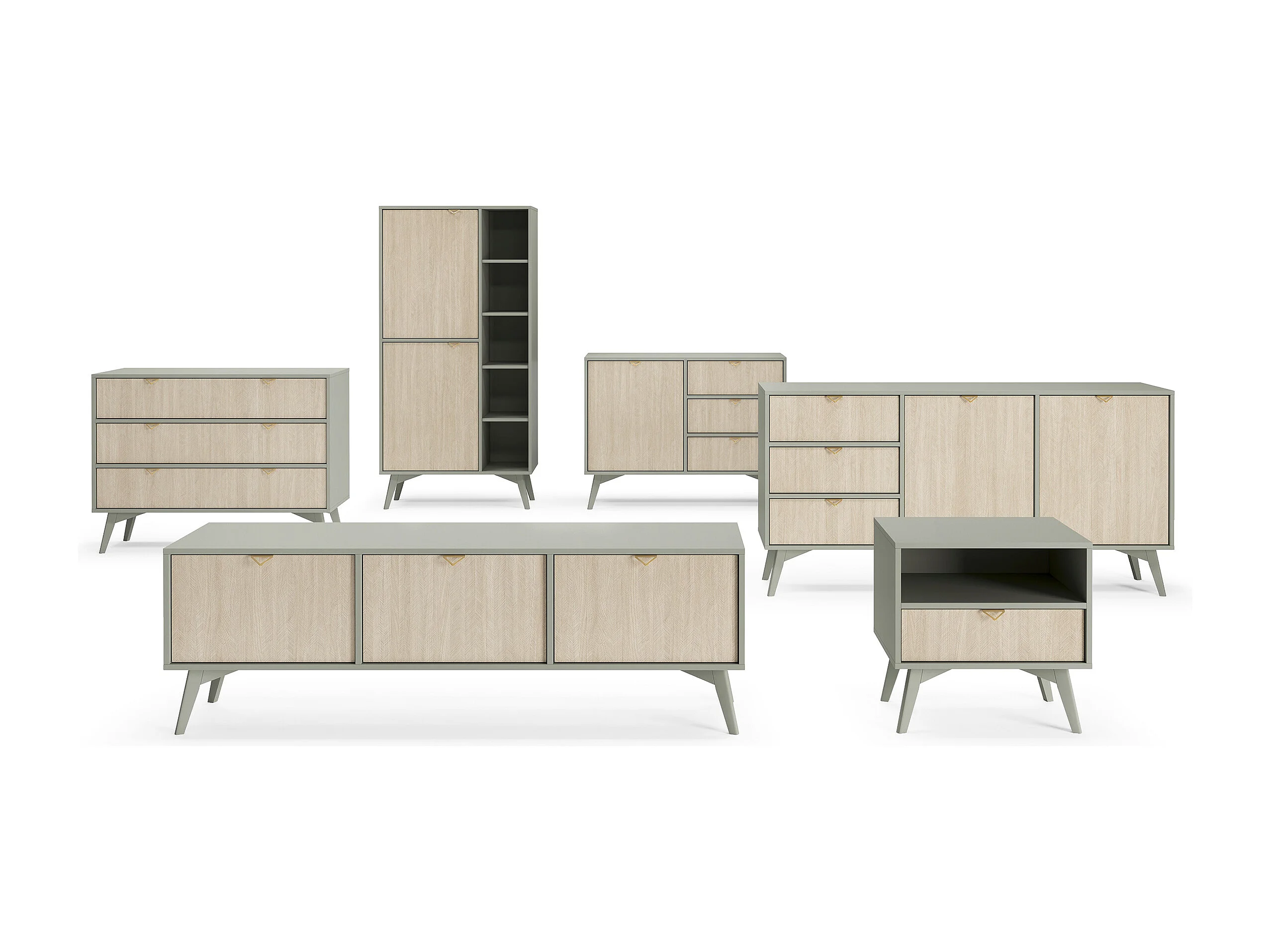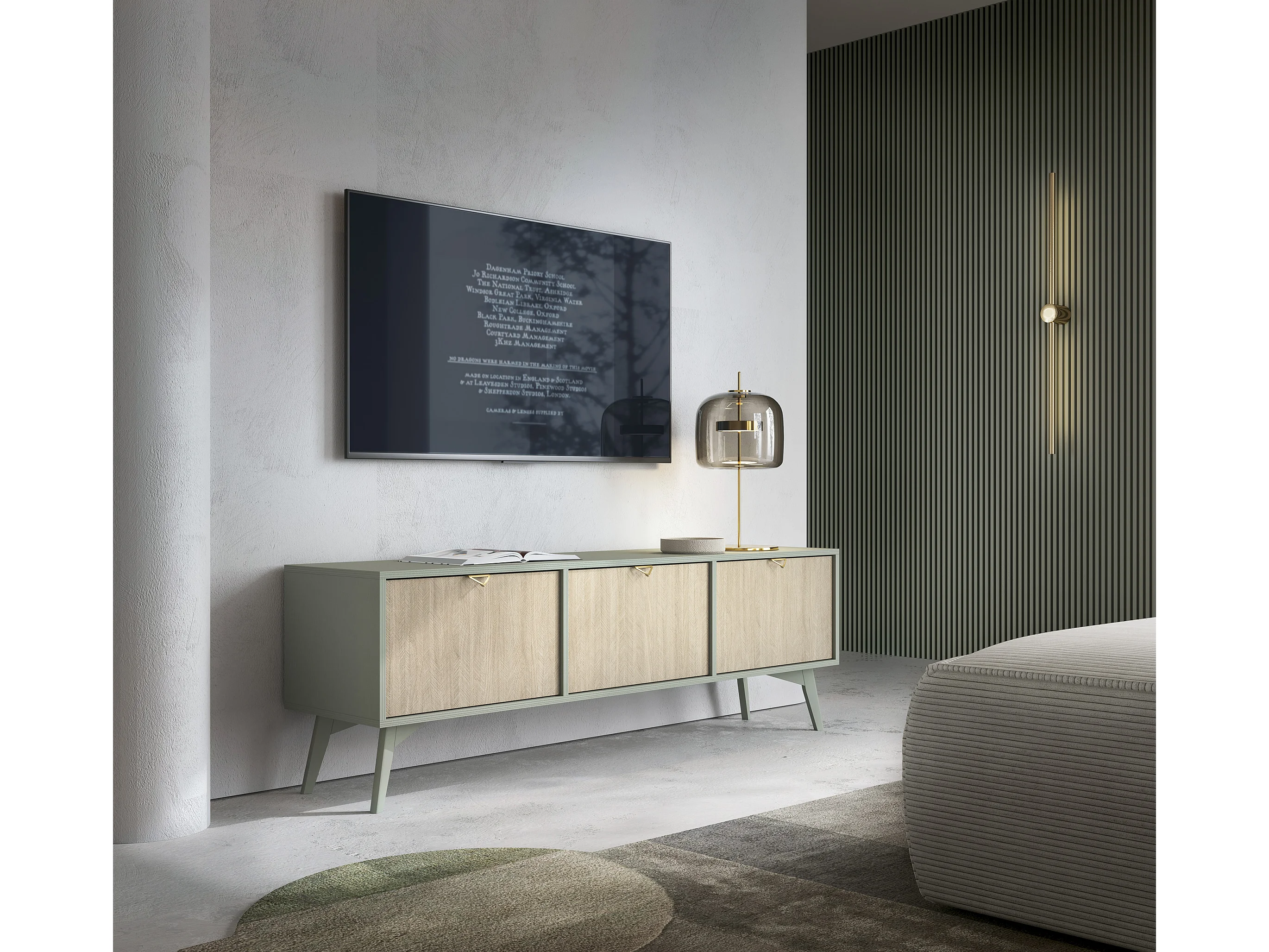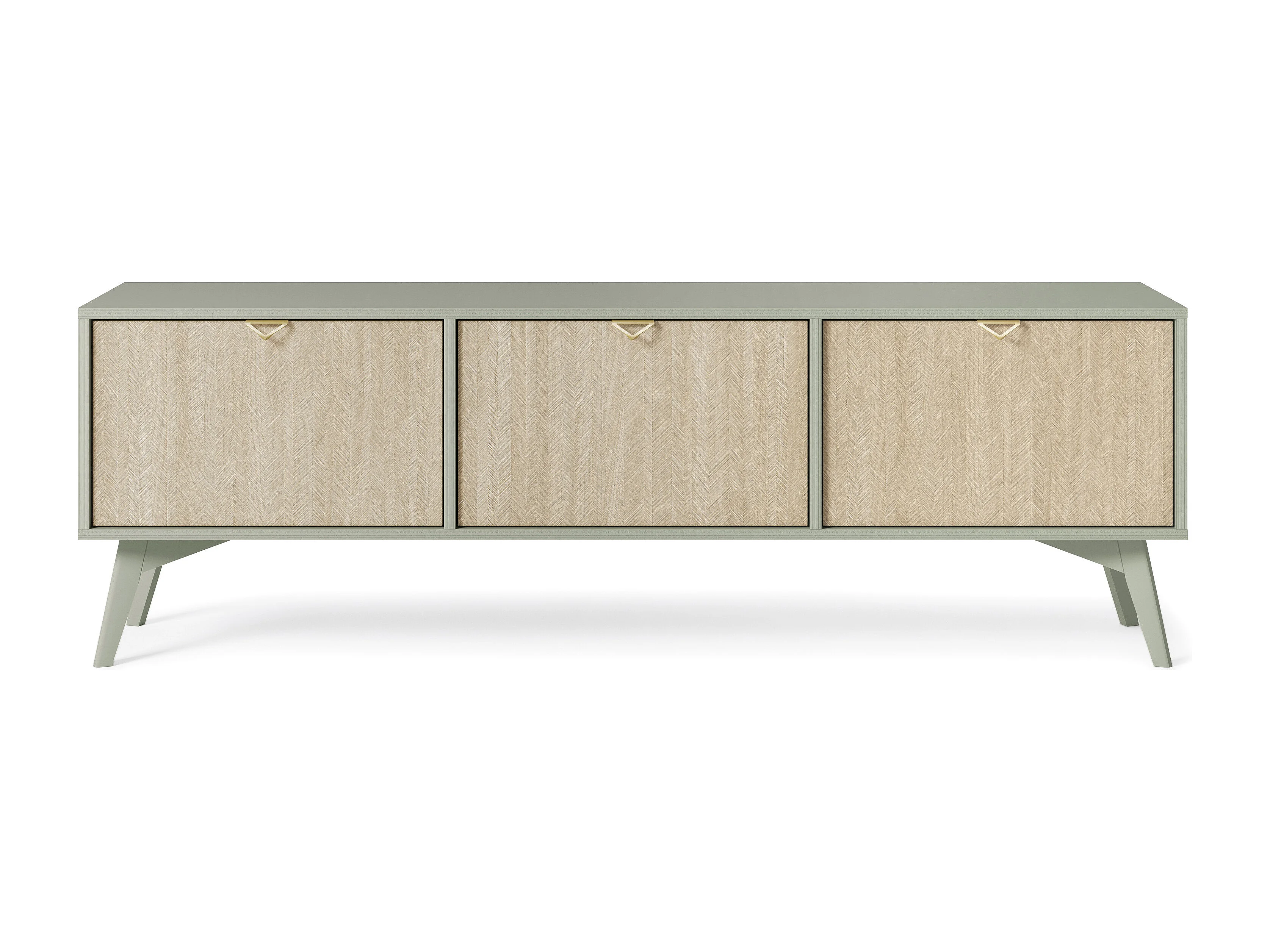 Meuble TV : Chevrons eucalyptus / Chevrons Scandi, pieds Bois, 158 x 52 x 38cm
