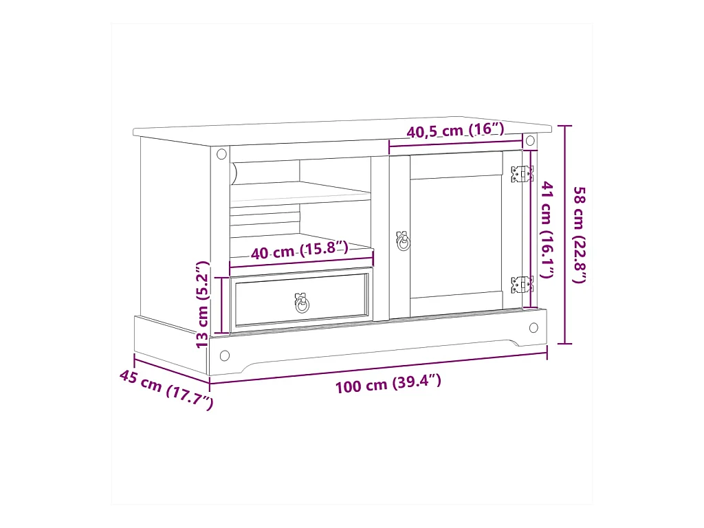 Meuble TV Corona 100x45x58 cm bois de pin massif