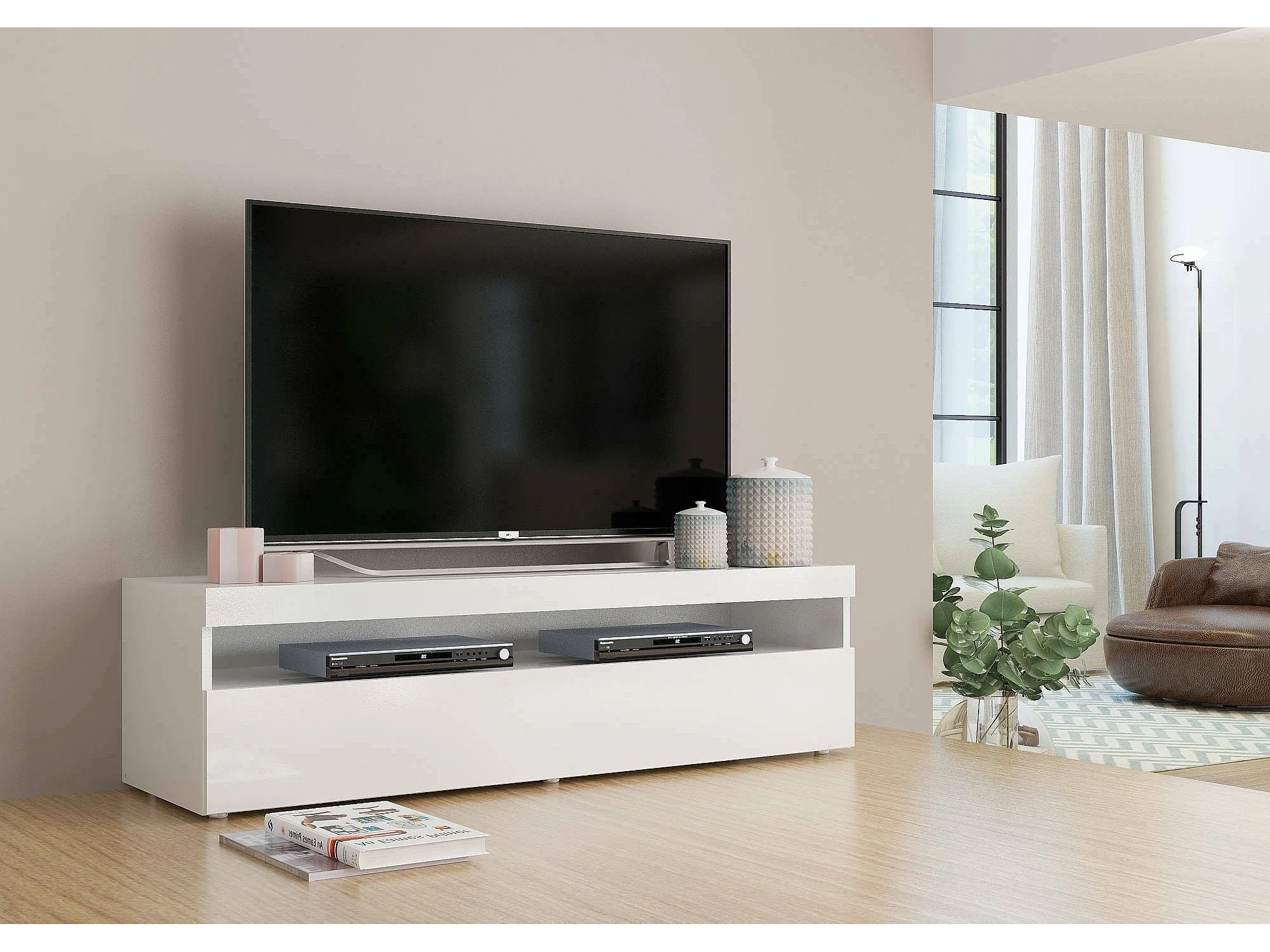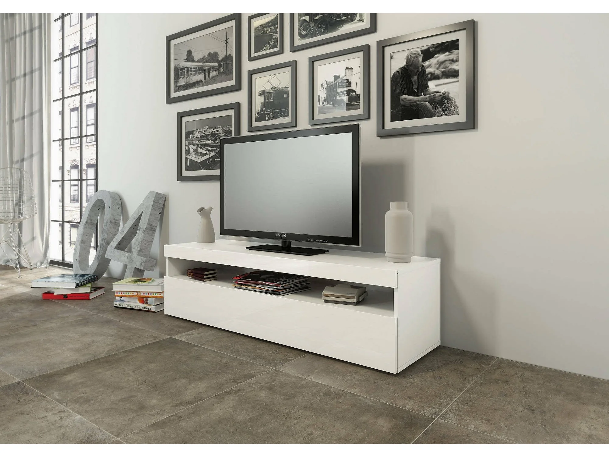 Meuble TV Daniele, Buffet bas de salon, Base pour meuble TV, 100% Made in Italy, 130x45h36 cm, Blanc brillant