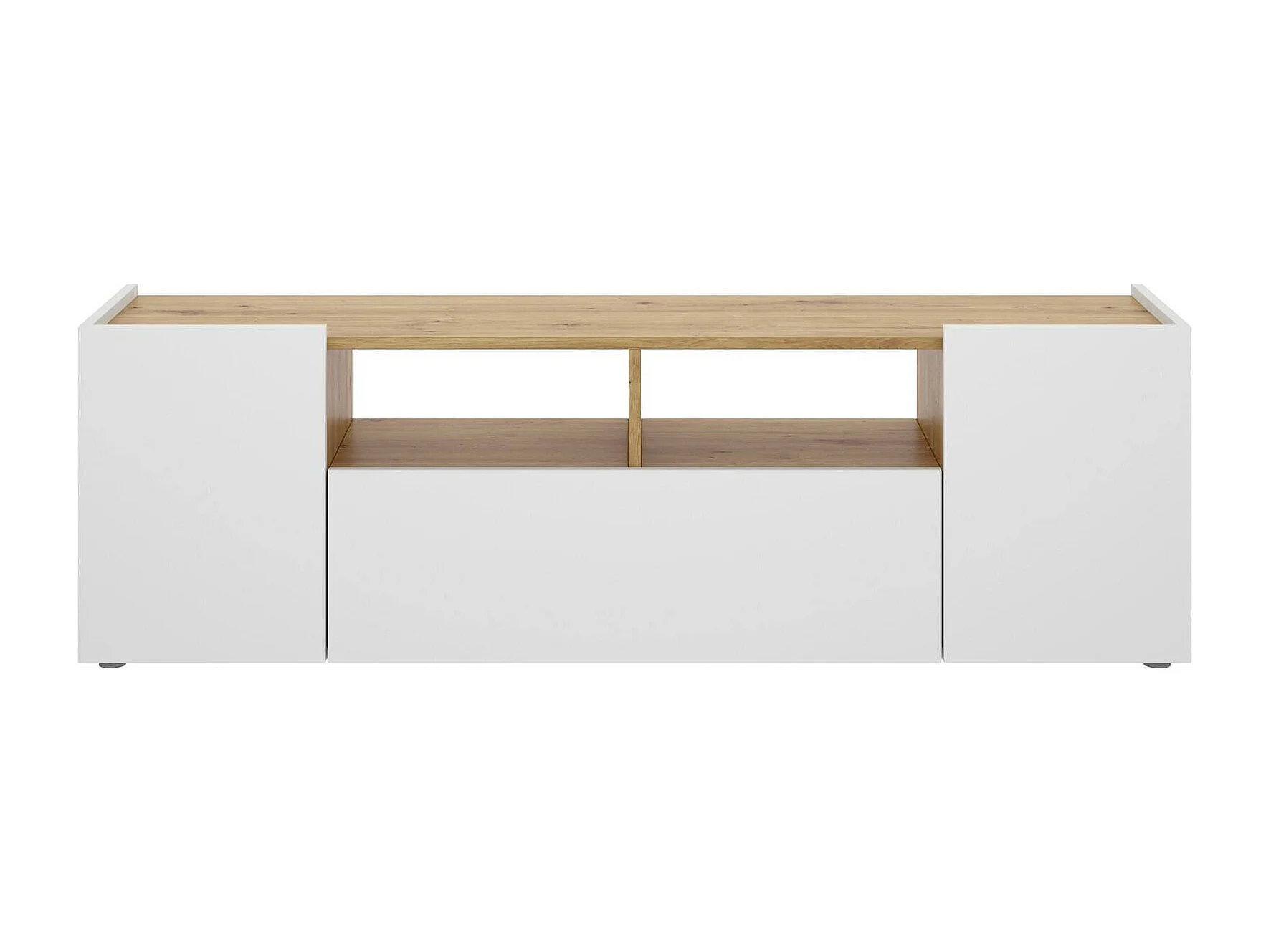 Meuble TV Dcotal, Buffet bas de salon, Buffet de salon pour télévision, 142x35h44 cm, Blanc et Chêne Noeud