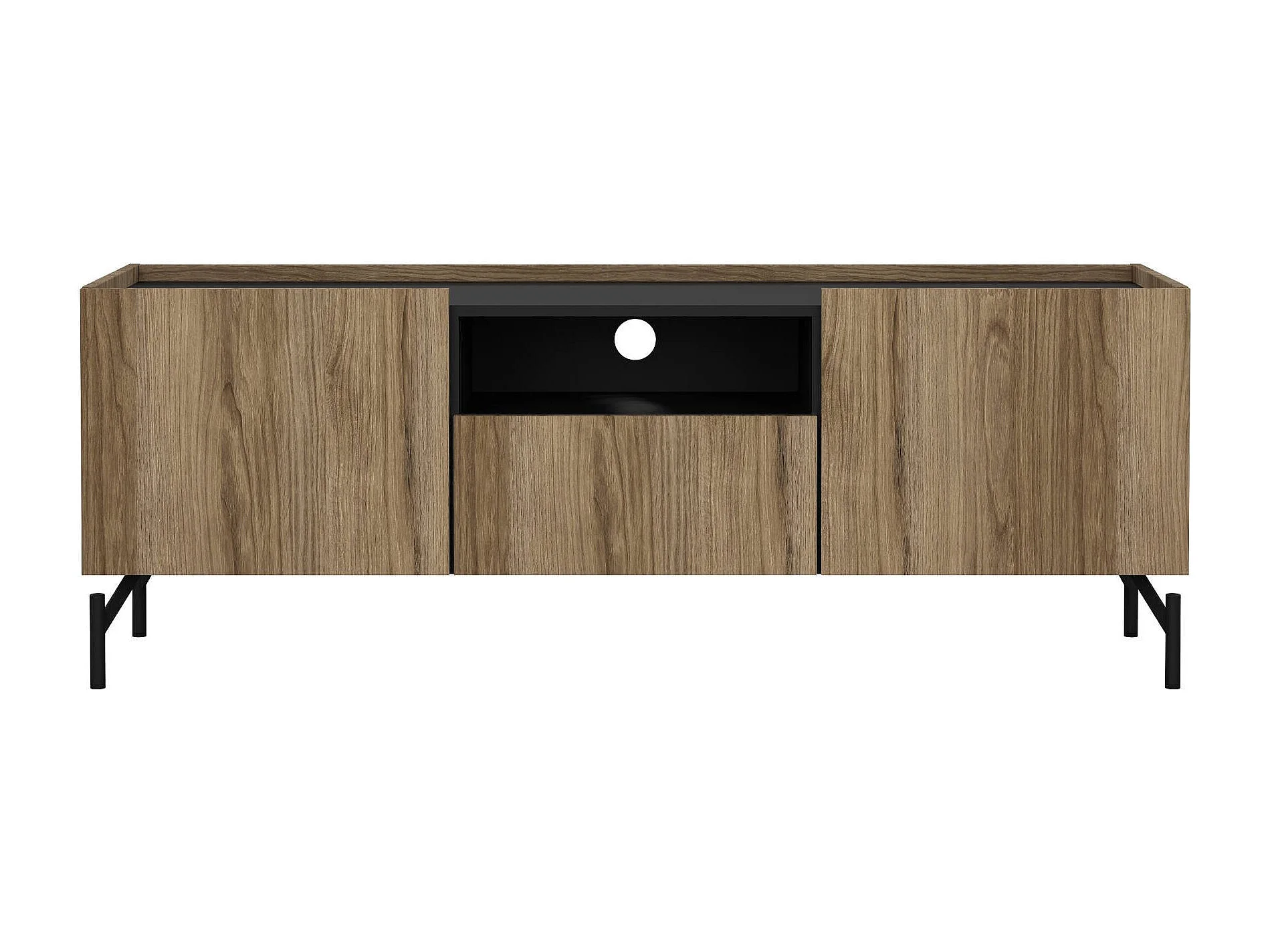 Meuble TV Ddtolo, Buffet de salon, Armoire basse pour TV, Base murale de rangement, 147x41 h54 cm, Chêne et Noir