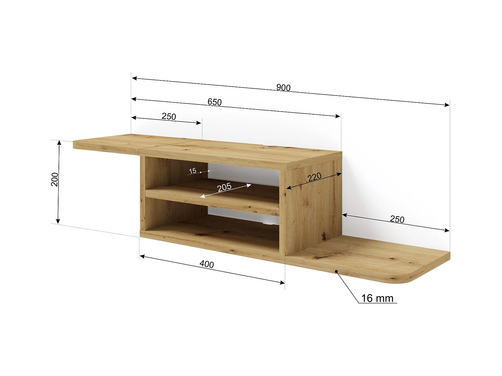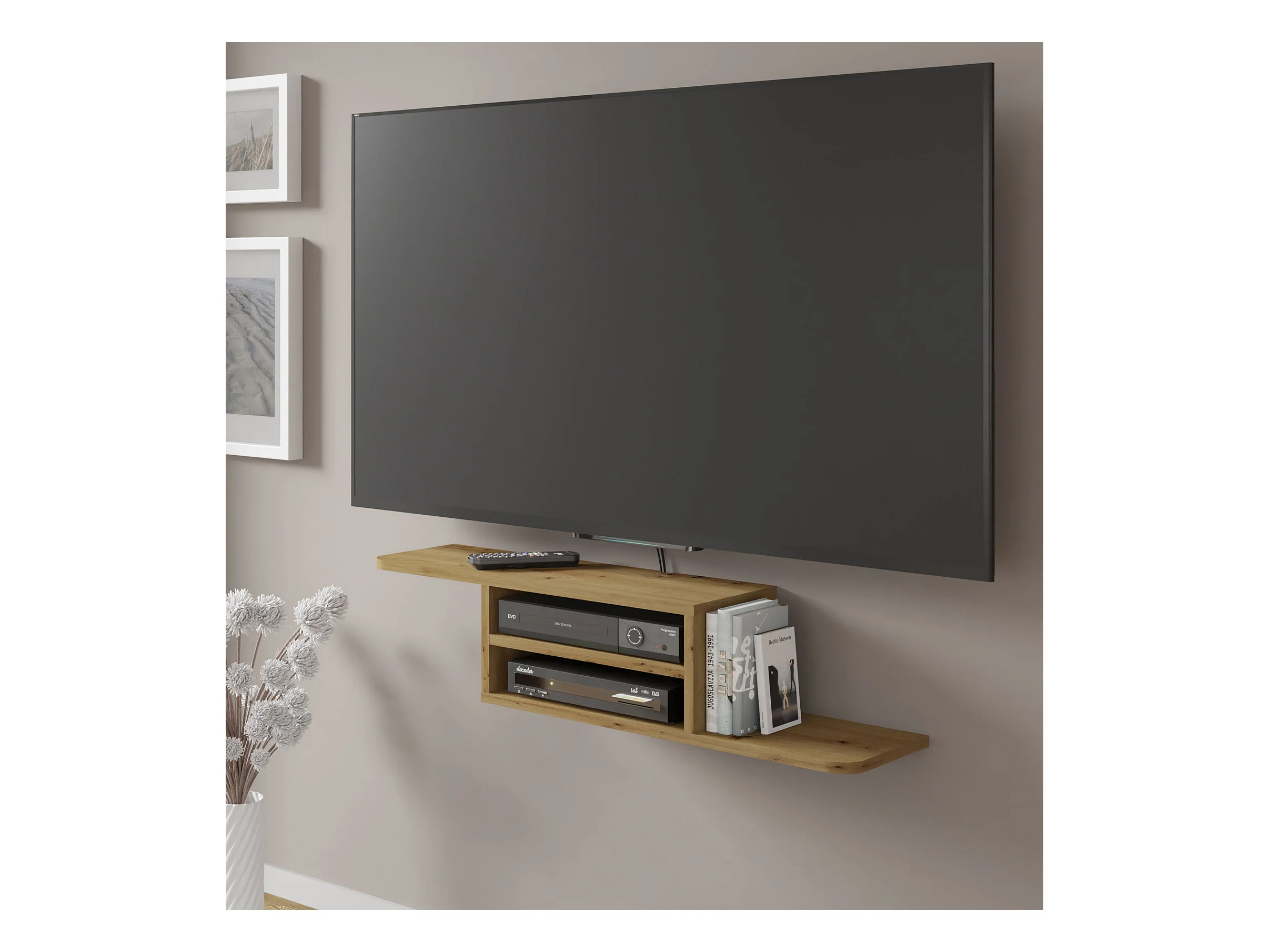 Meuble TV Aludra, Buffet de salon, Armoire basse pour TV, Base murale de rangement, 140x43h64 cm, Chêne et Blanc