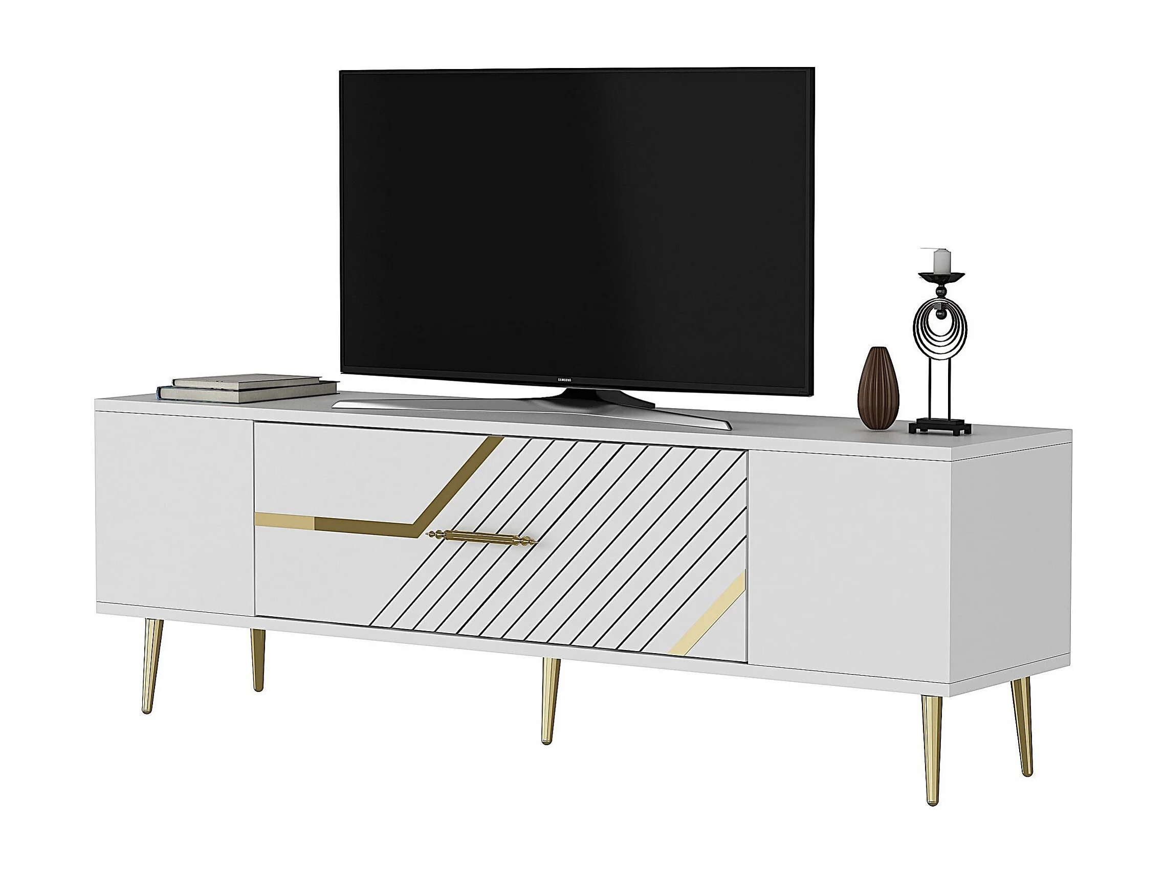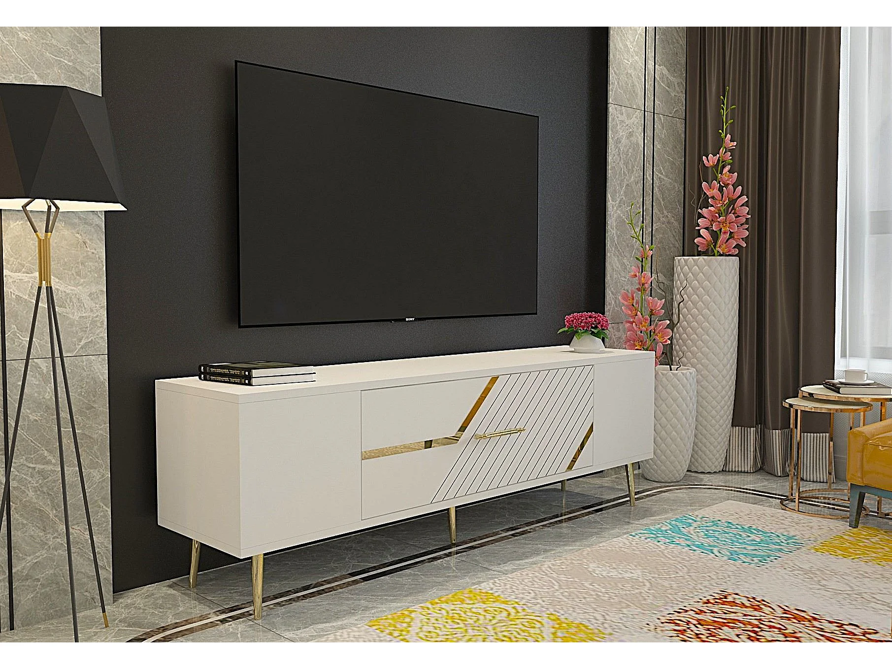 Meuble Tv design 1 porte basculante Merina L150cm Blanc et Or