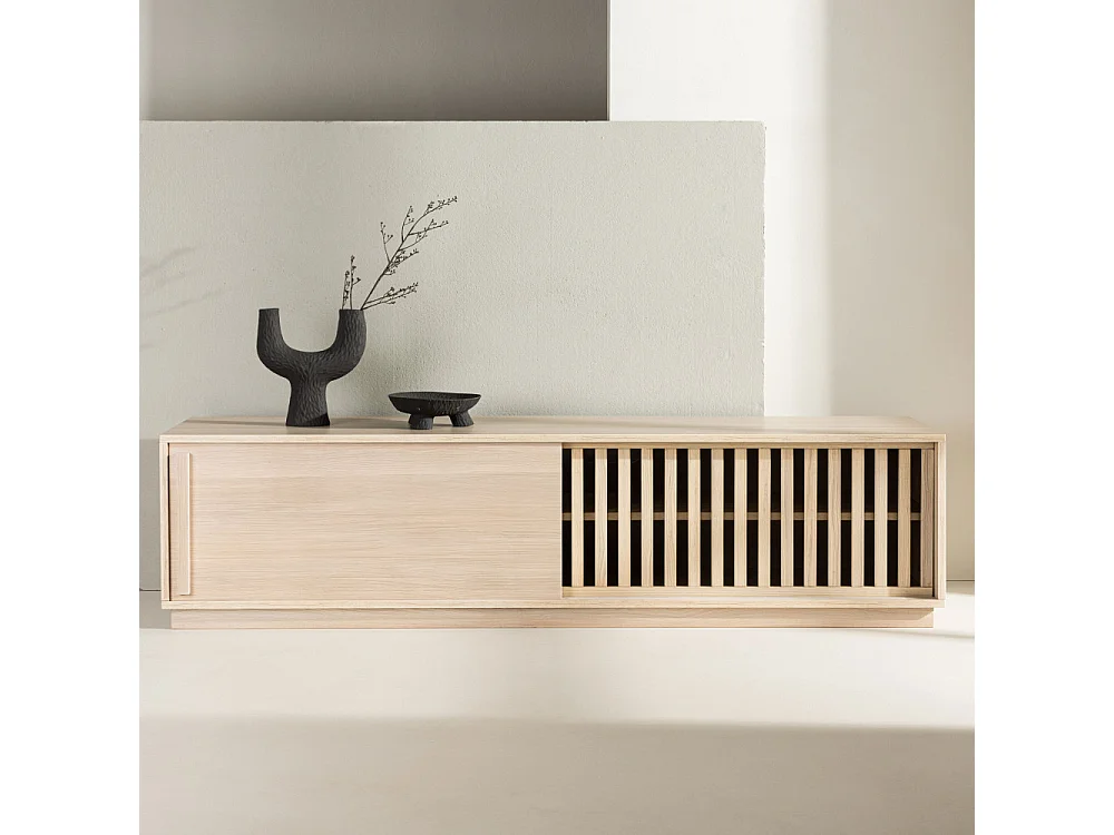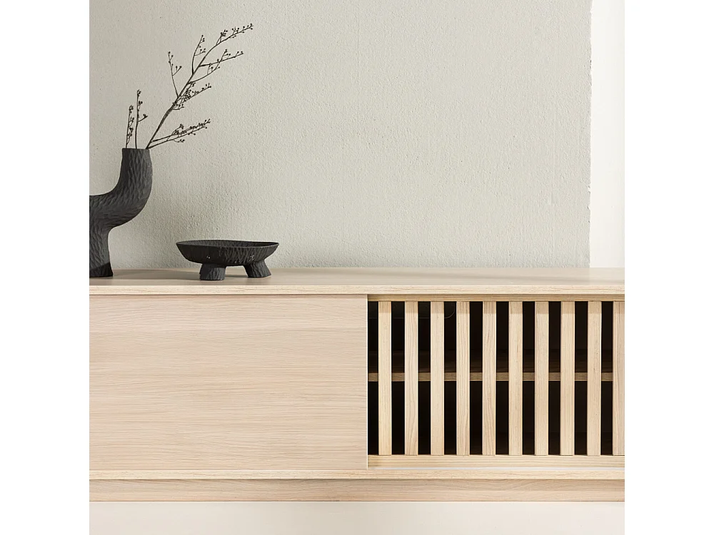 Meuble TV Design Nervuré "Lugo" 180cm Naturel