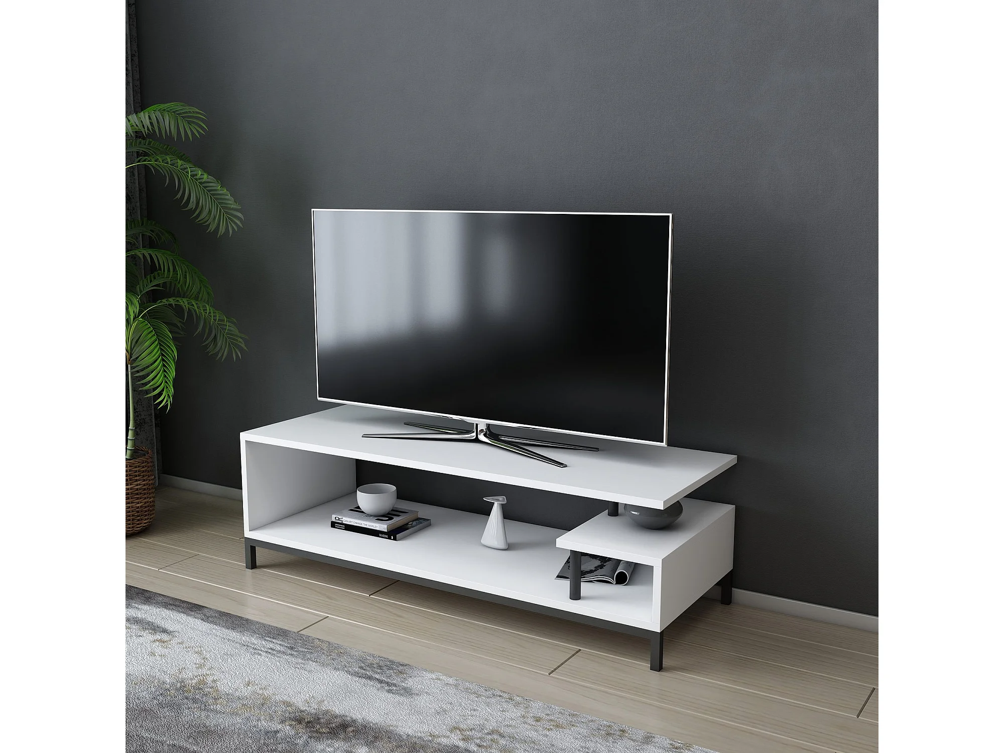 Meuble Tv design Kyrisa L120cm Métal Noir et Bois Blanc