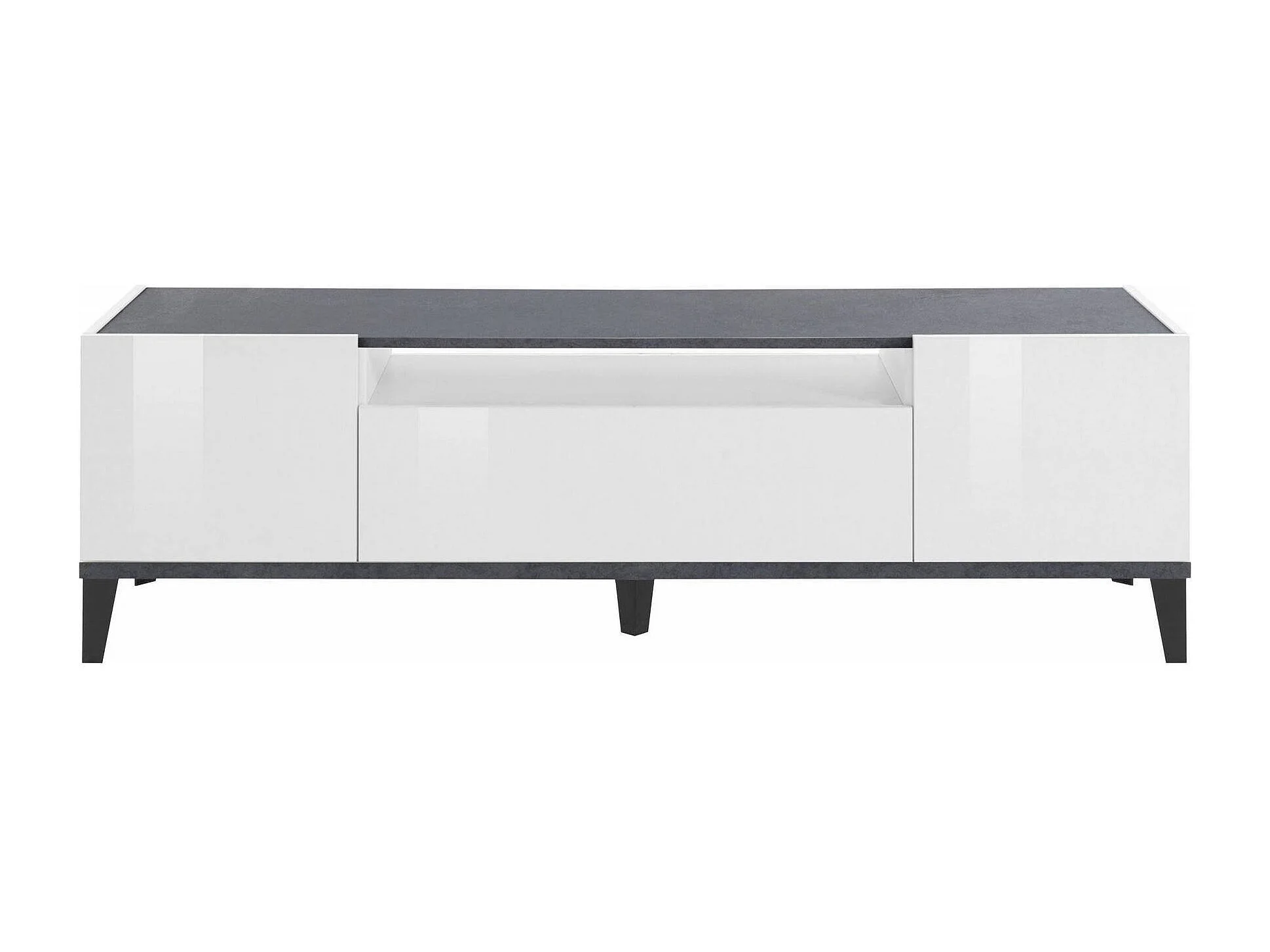 Meuble TV Dfigol, Buffet bas de salon avec 2 portes, Base pour meuble TV, 100% Made in Italy, 160x40h47 cm, Blanc brillant et ardoise