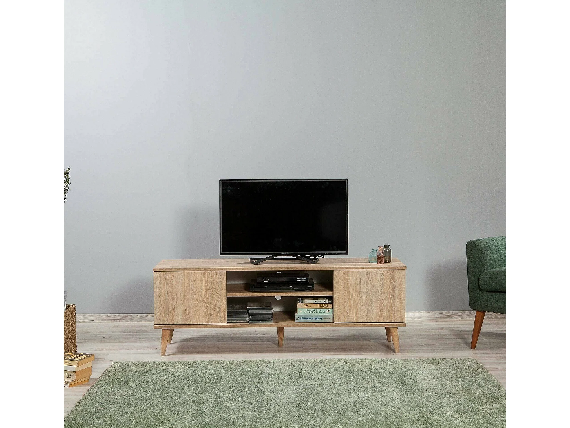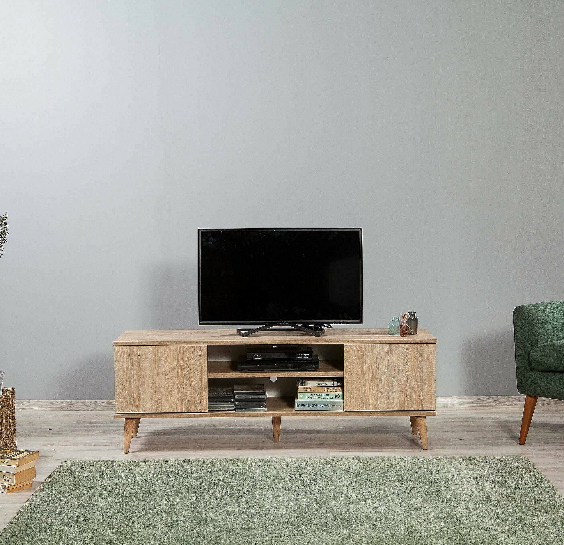 Meuble TV Dinfantin, Buffet de salon, Armoire basse pour TV, Base murale de rangement, 140x40 h50 cm, Chêne