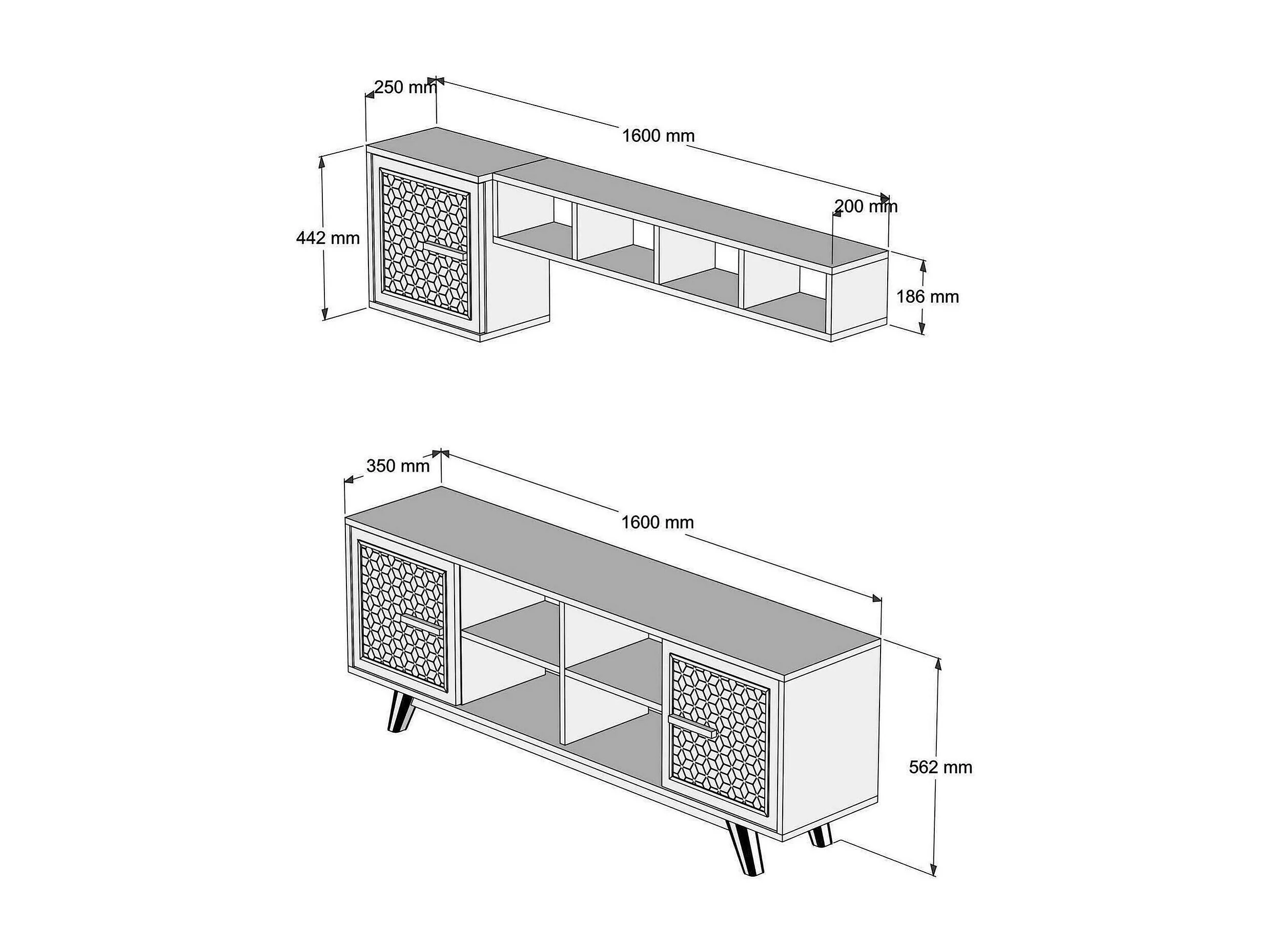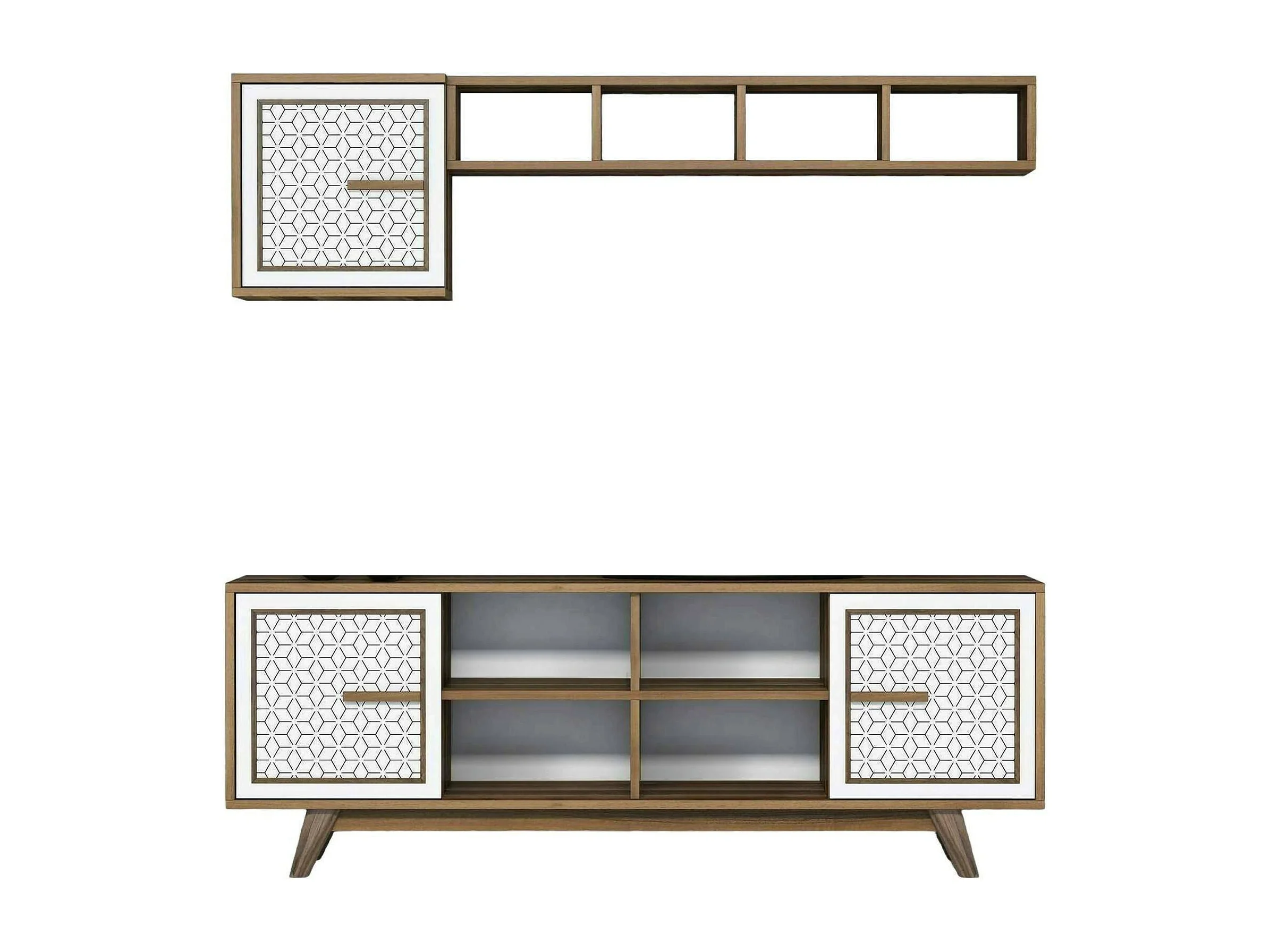 Meuble TV Diph, Buffet de salon, Armoire basse pour TV, Base murale de rangement, 160x35h56 cm, Noyer et Blanc