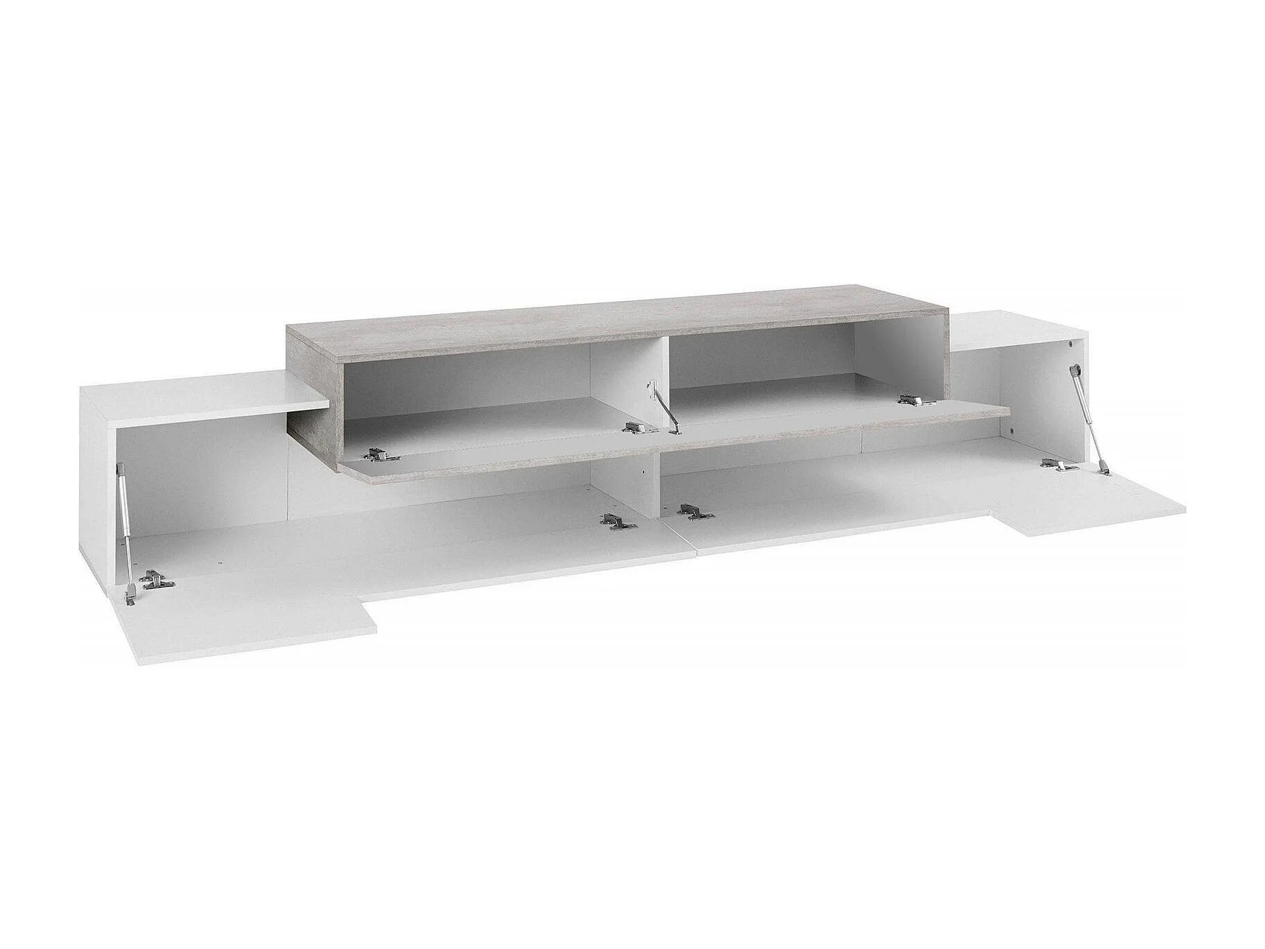 Meuble TV Dlamann, Buffet bas de salon, Base pour meuble TV, 100% Made in Italy, 240x45h52 cm, Blanc brillant et béton
