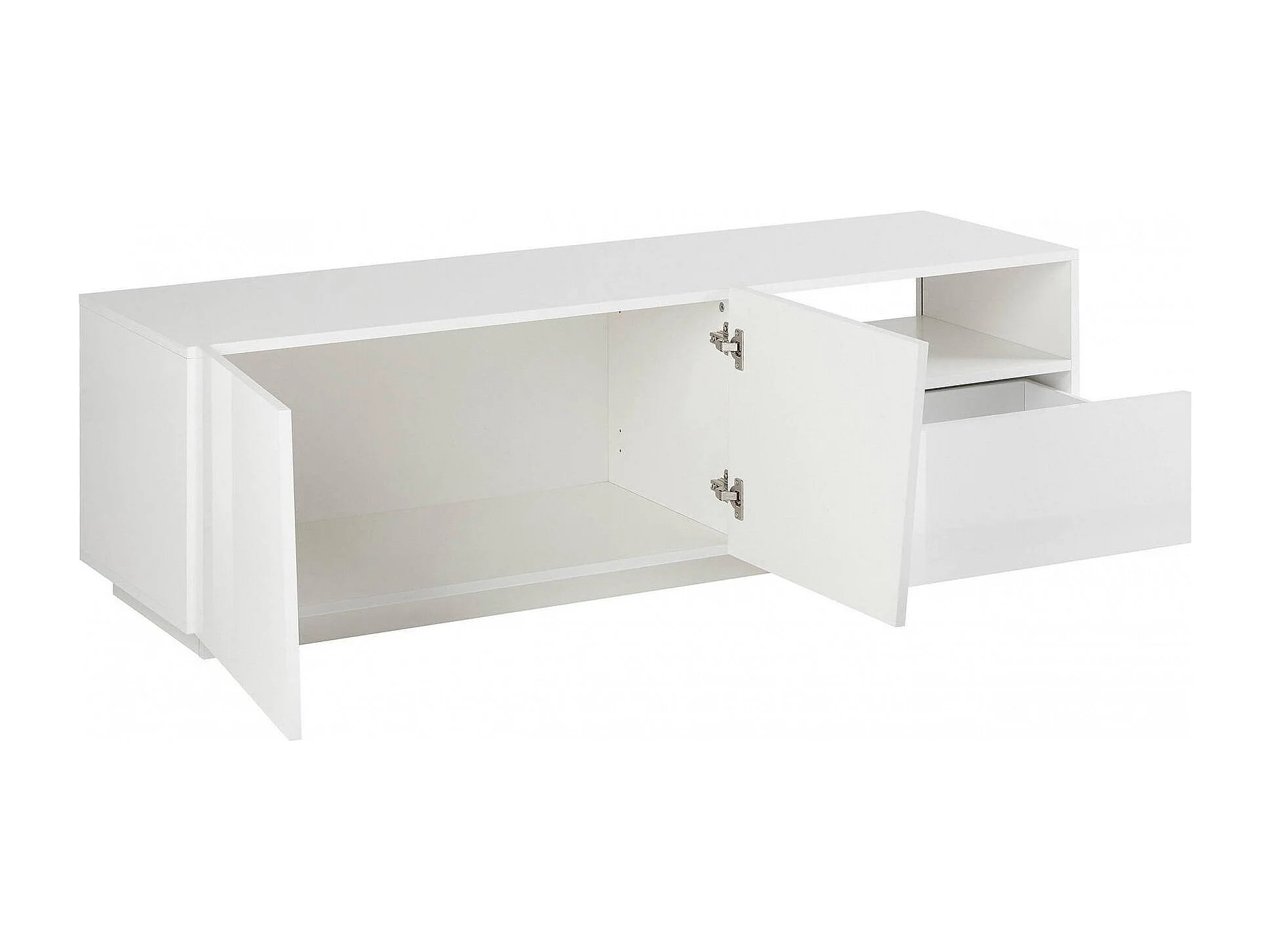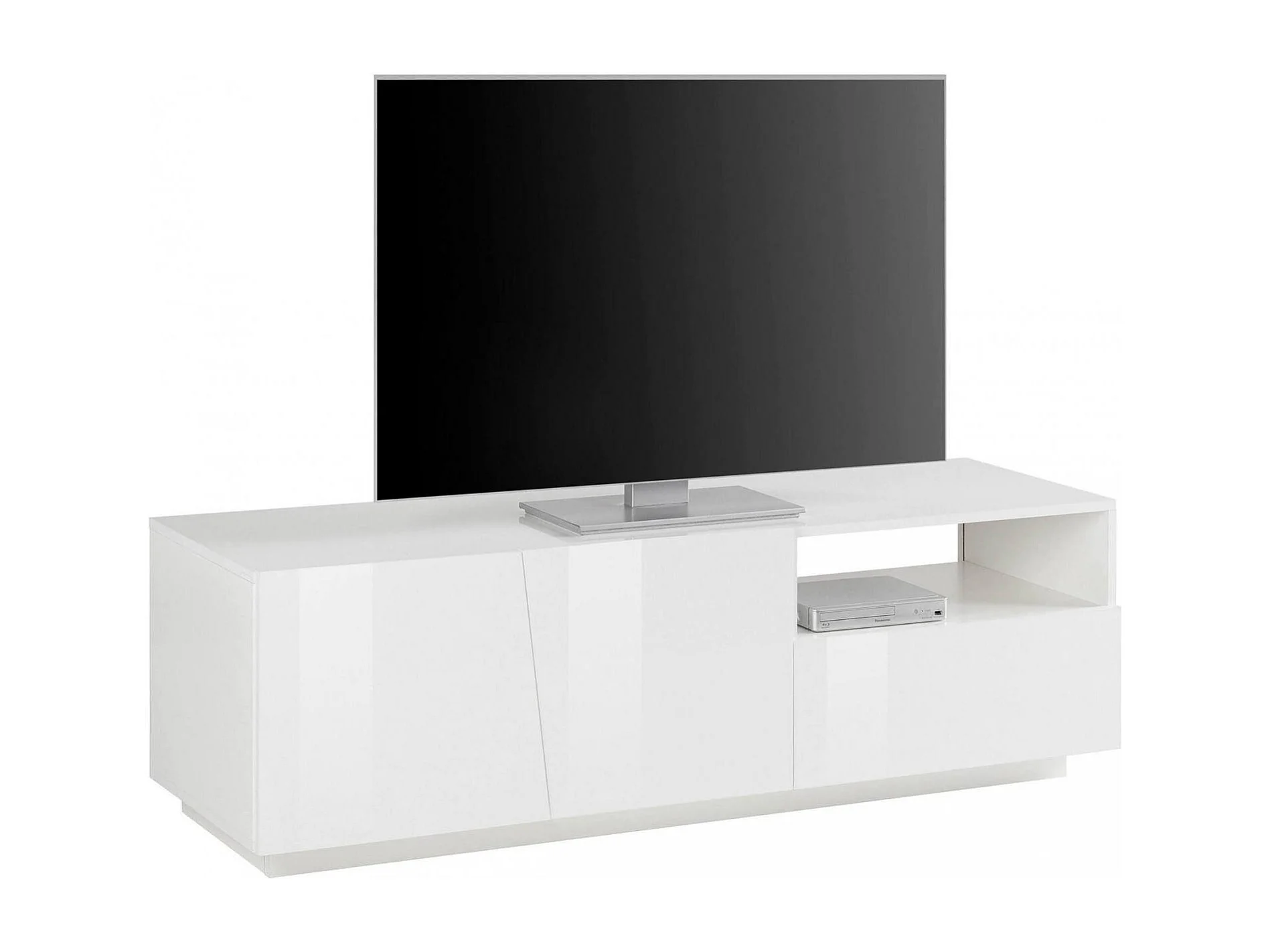 Meuble TV Dlandon, Buffet bas de salon avec 2 portes, Base pour meuble TV, 100% Made in Italy, 150x43h46 cm, Blanc brillant