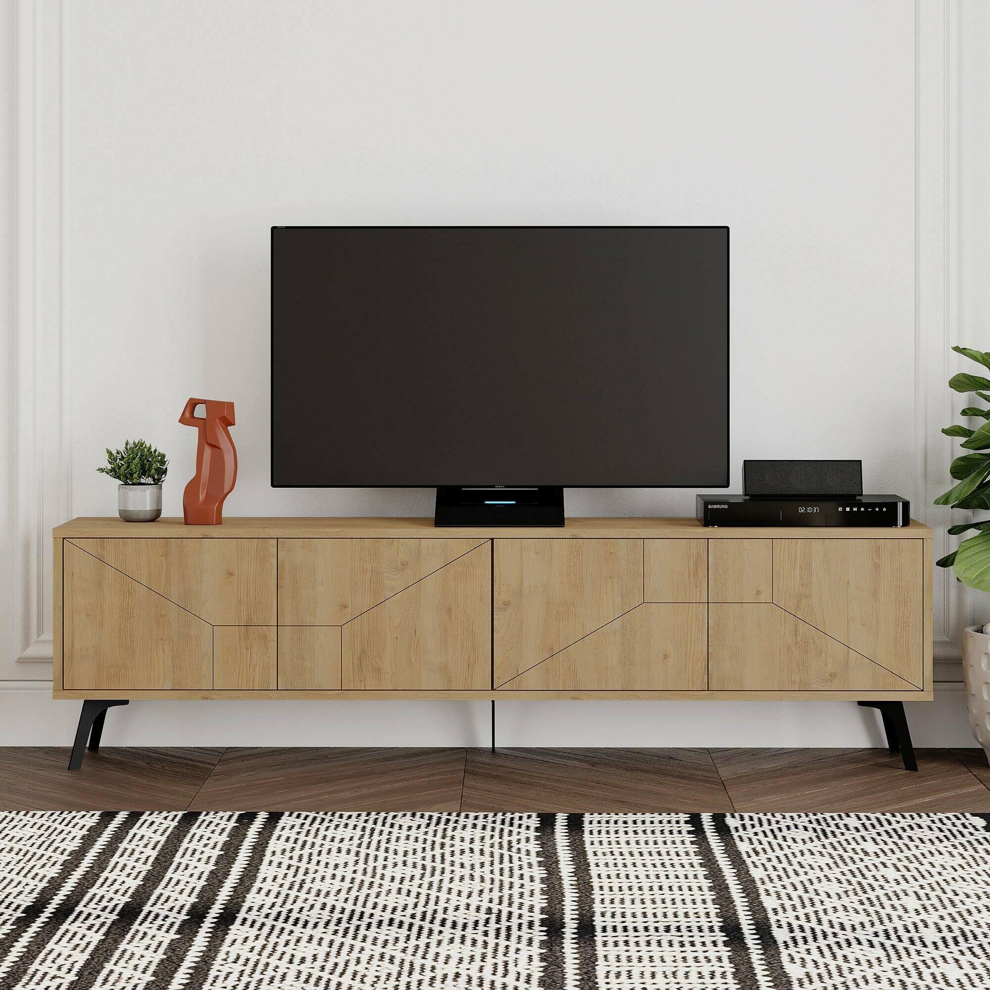 Meuble TV Dliget, Buffet de salon, Armoire basse pour TV, Base murale de rangement, 180x30 h50 cm, Chêne