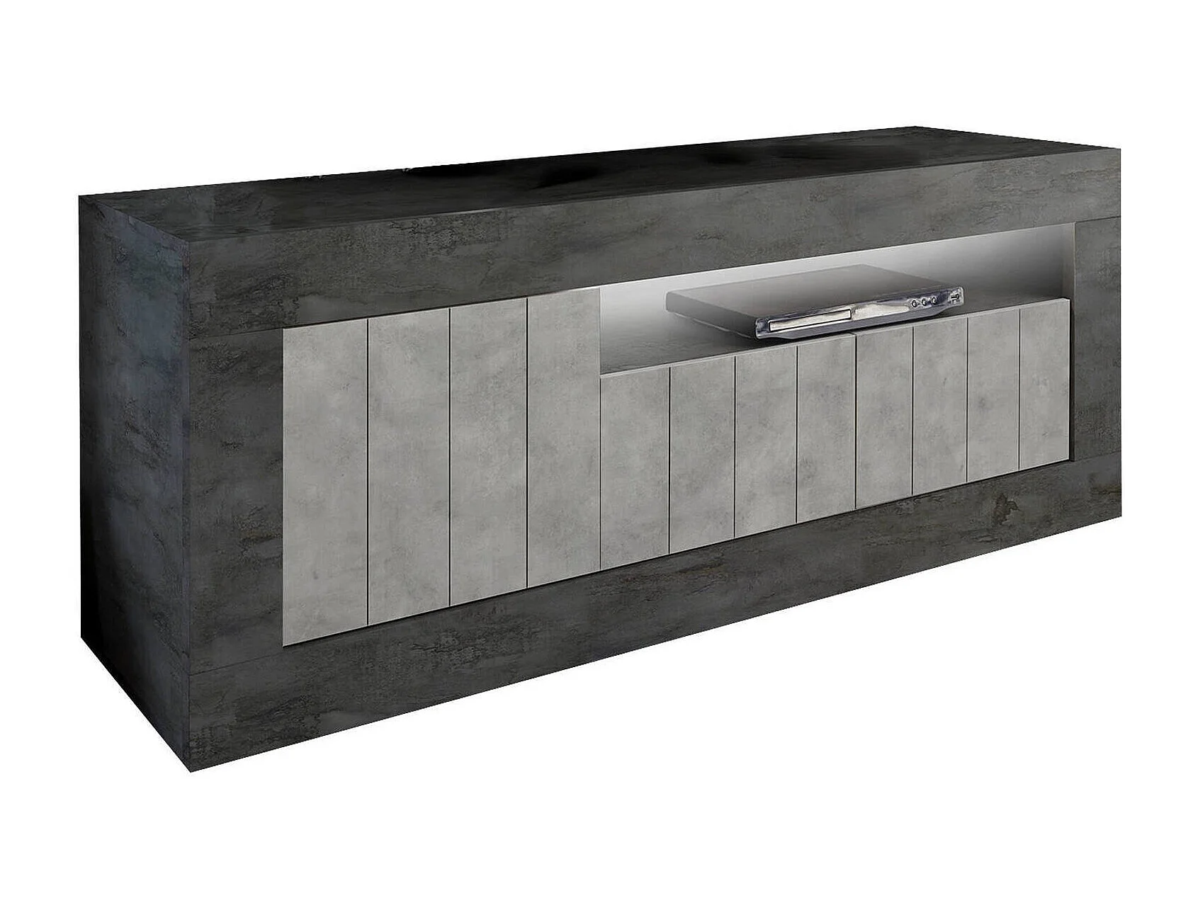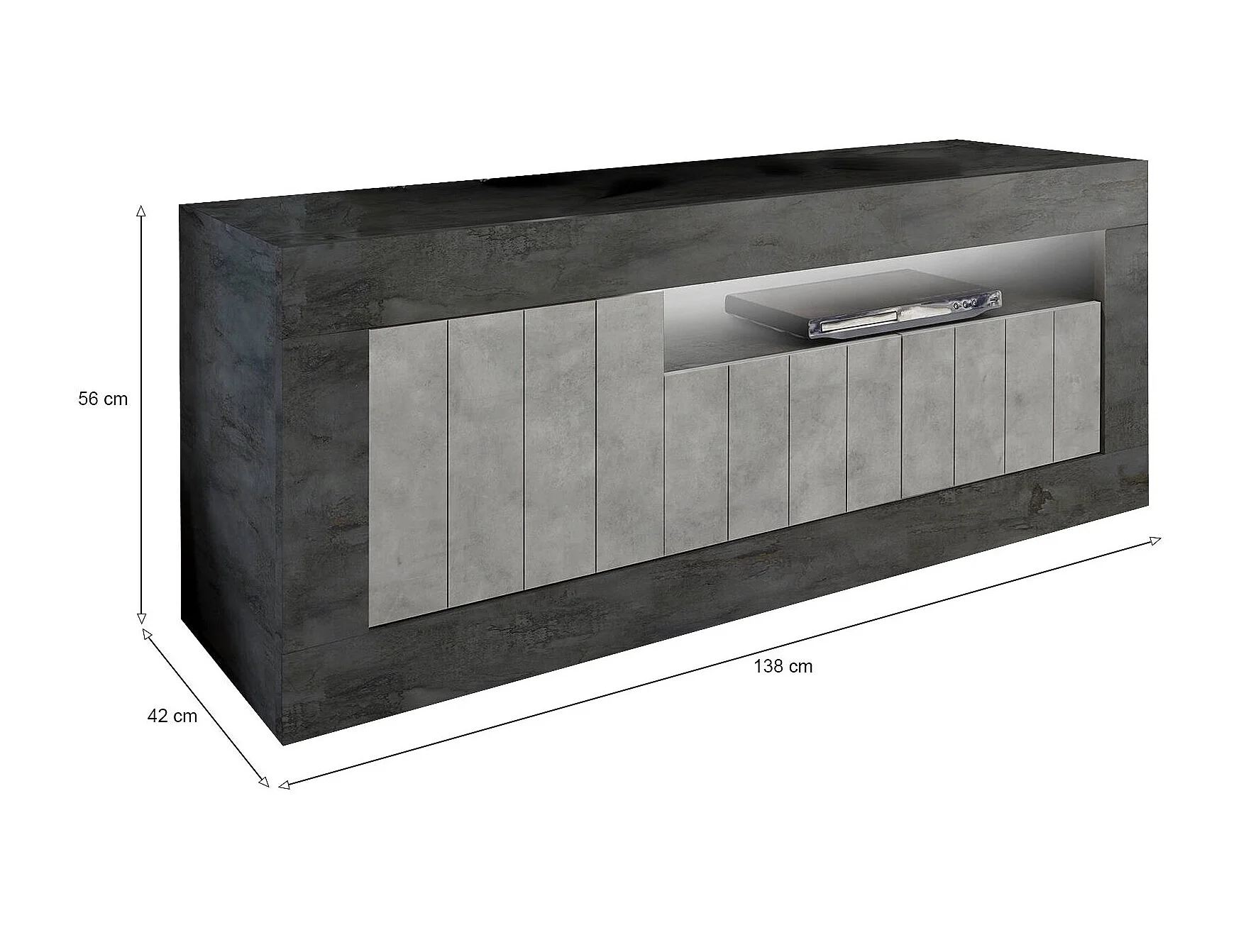 Meuble TV Dmurra, Buffet de salon, Armoire basse pour TV, Base murale de rangement, Made in Italy, 138x42 h56 cm, Ardoise et Ciment