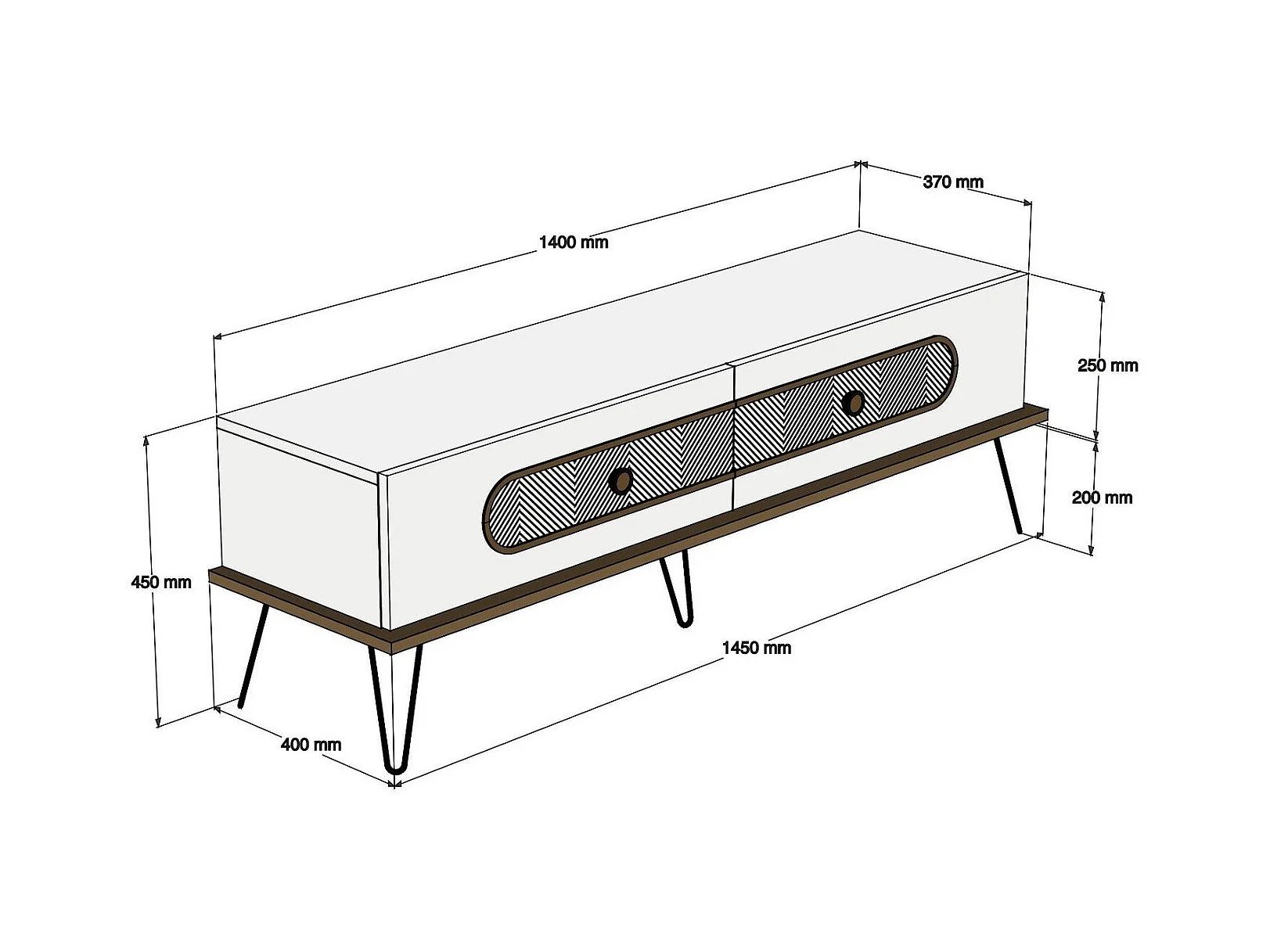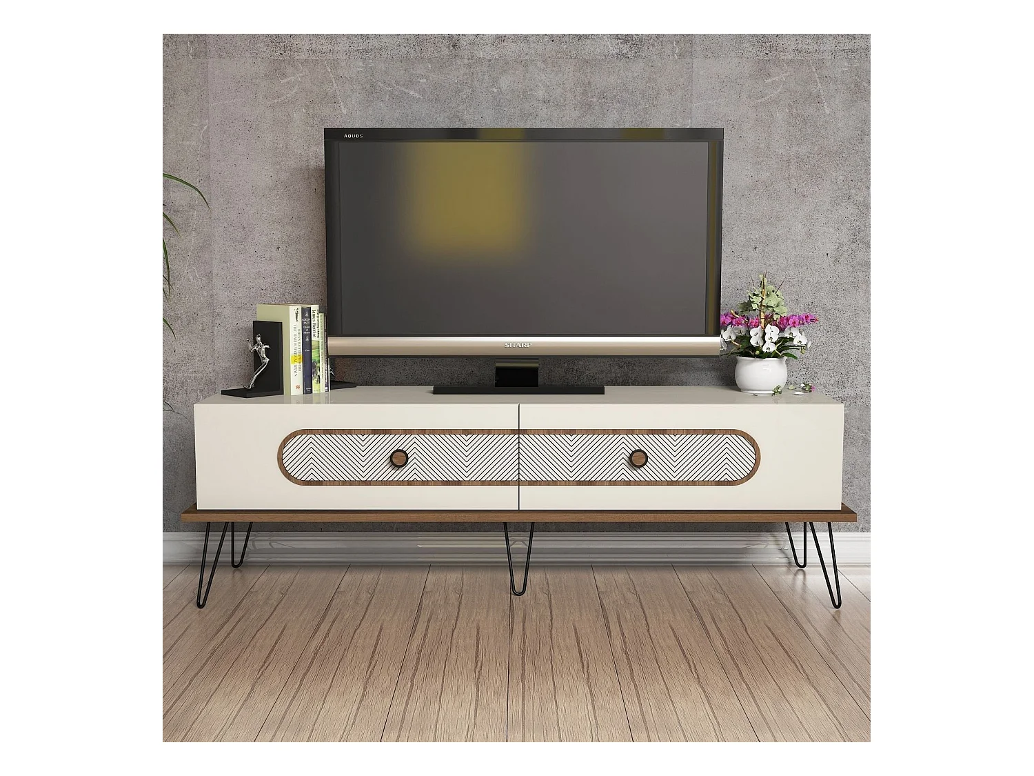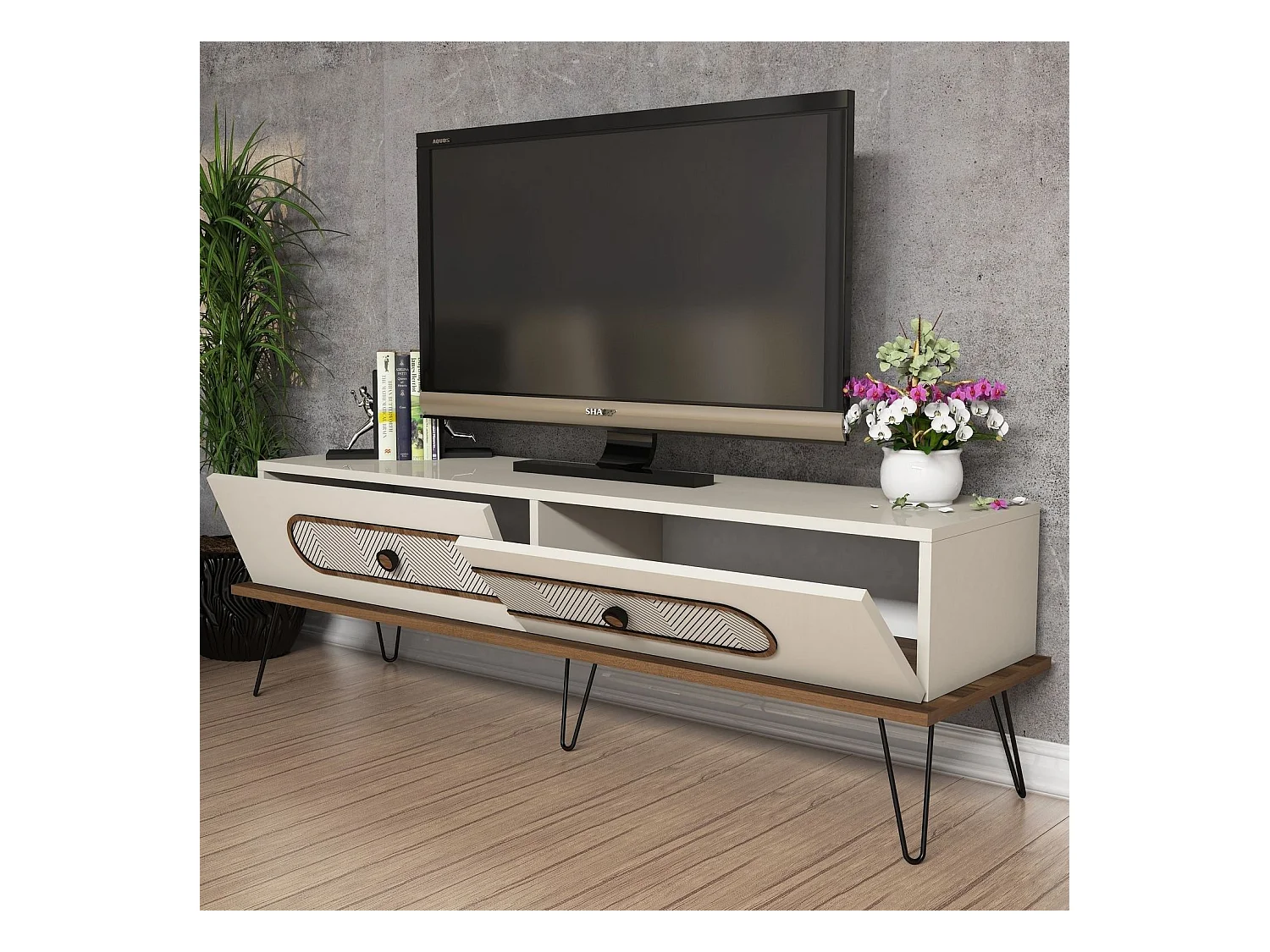 Meuble TV Dover L145cm Bois foncé et Blanc crème