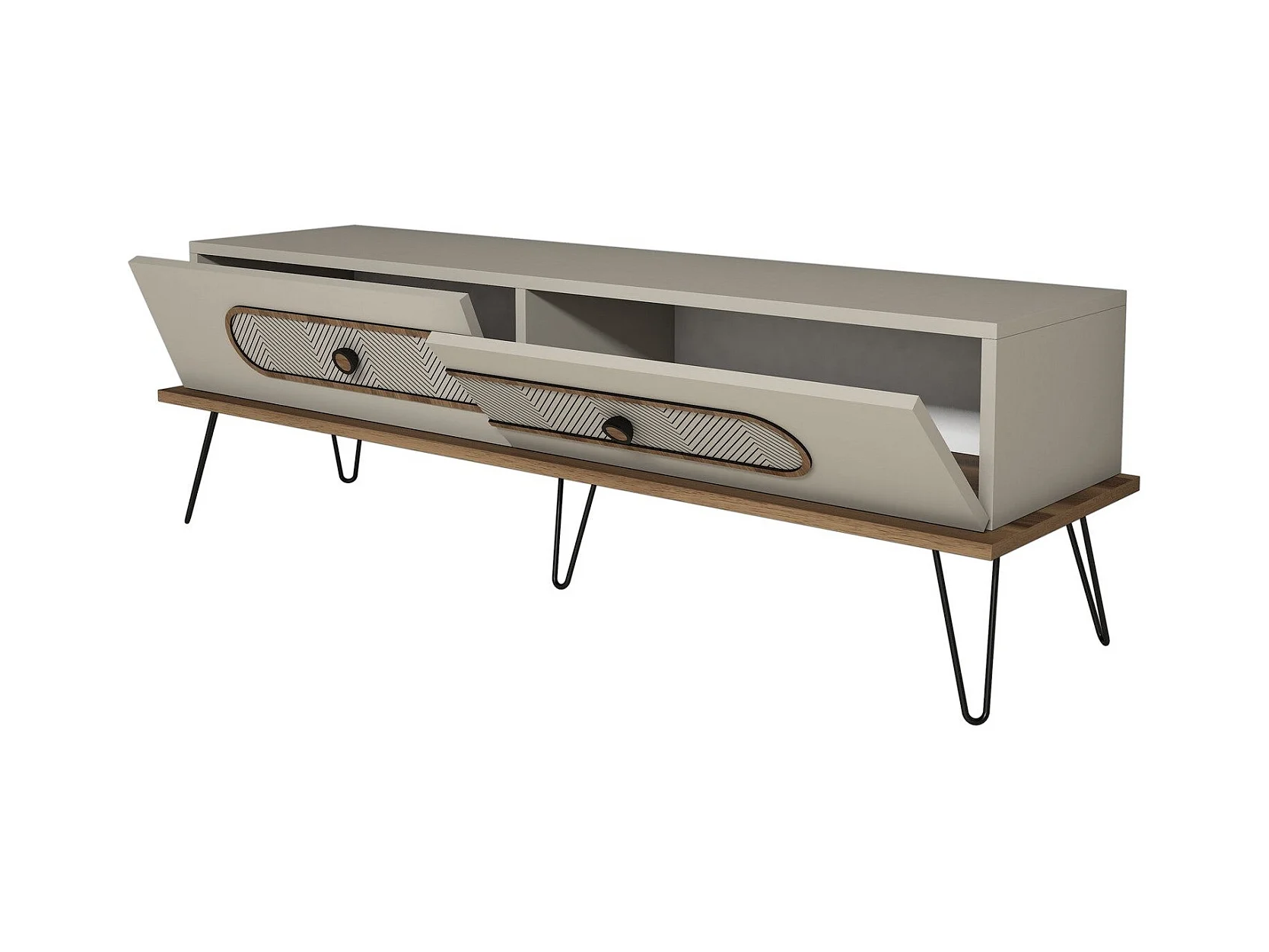 Nube - Meuble TV avec porte coulissante en bois L180cm - Beige