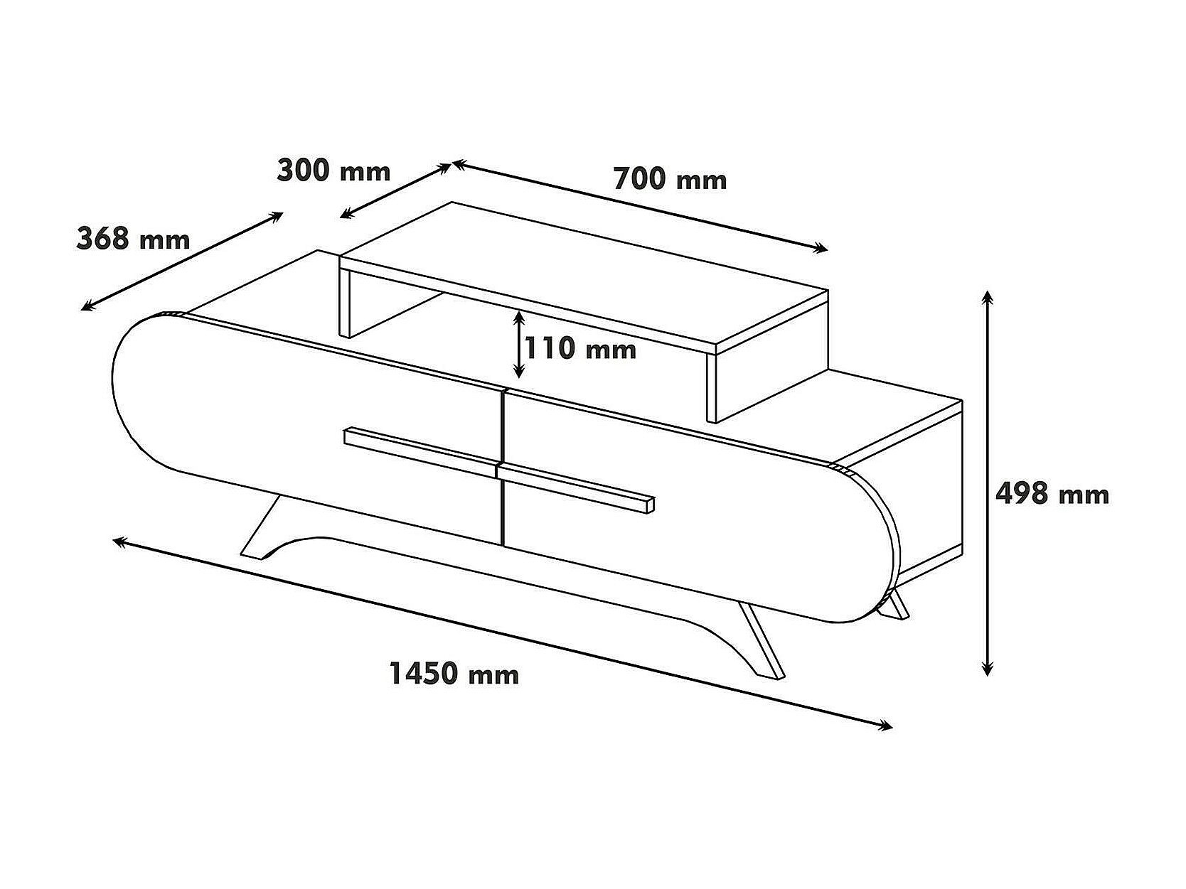 MEUBLE TV - Buffet de salon, Armoire basse pour TV, Base murale de rangement, 145x37 h50 cm, Noyer et Crème. STRUCTURE ET UTILISATION - Meuble TV moderne, innovant et fonctionnel - Le choix de la structure interne qui compose cet ensemble de salon rend le design du meuble moderne, polyvalent, pratique et peu encombrant - L'étagère supérieure est parfaite pour accueillir votre TV, chaîne stéréo ou vos décorations préférées - Meubles multifonctionnels parfaits pour meubler des environnements exigeants en espace. QUALITÉ ET DESIGN - Meuble au design moderne et élégant, parfait pour meubler un environnement contemporain et lumineux - Idéal pour ceux qui recherchent des solutions fonctionnelles et peu encombrantes, ce produit est parfait pour les maisons et les appartements de toutes tailles - Garantie de deux ans à compter de la date d'achat. CARACTÉRISTIQUES TECHNIQUES - Accessoire d'ameublement polyvalent, conçu pour une intégration facile avec d'autres meubles - Emballage résistant, conçu pour le commerce électronique - Matériau: Panneau de particules mélaminé 18mm - Informations supplémentaires: Nombreuses étagères - Se fixe au mur - Produit livré démonté - Kit de fixation murale inclus - Etagères non réglables. DIMENSIONS EN CM - Meuble TV : Longueur: 145 Largeur: 36,8 Hauteur: 49,8 - Dimensions supplémentaires: Dimensions étagère : Largeur : 70cm Hauteur : 11cm Profondeur : 30cm